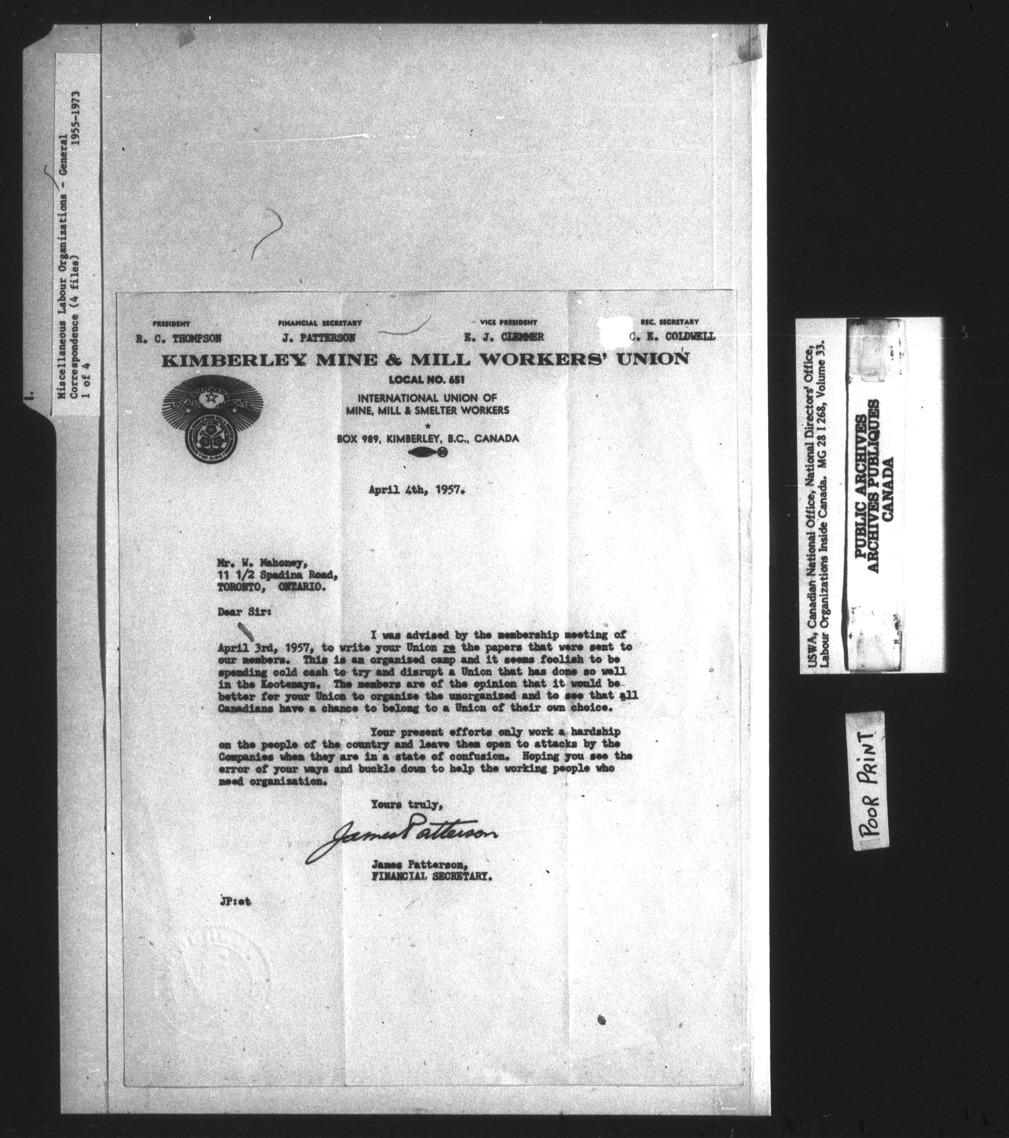 United Steelworkers of America : National Director's Office, Labour Organizations inside Canada - 13128