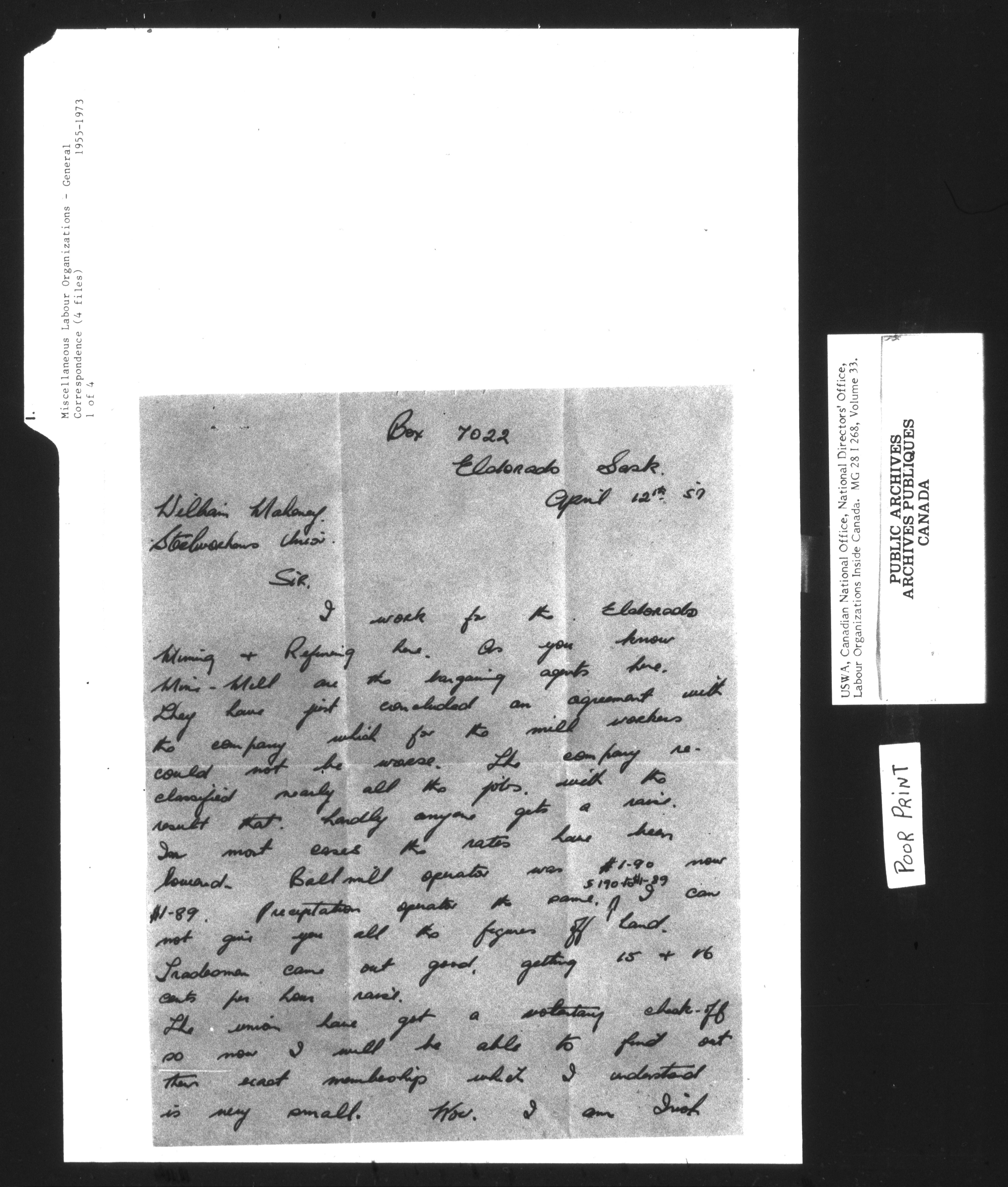 United Steelworkers of America : National Director's Office, Labour Organizations inside Canada - 13128