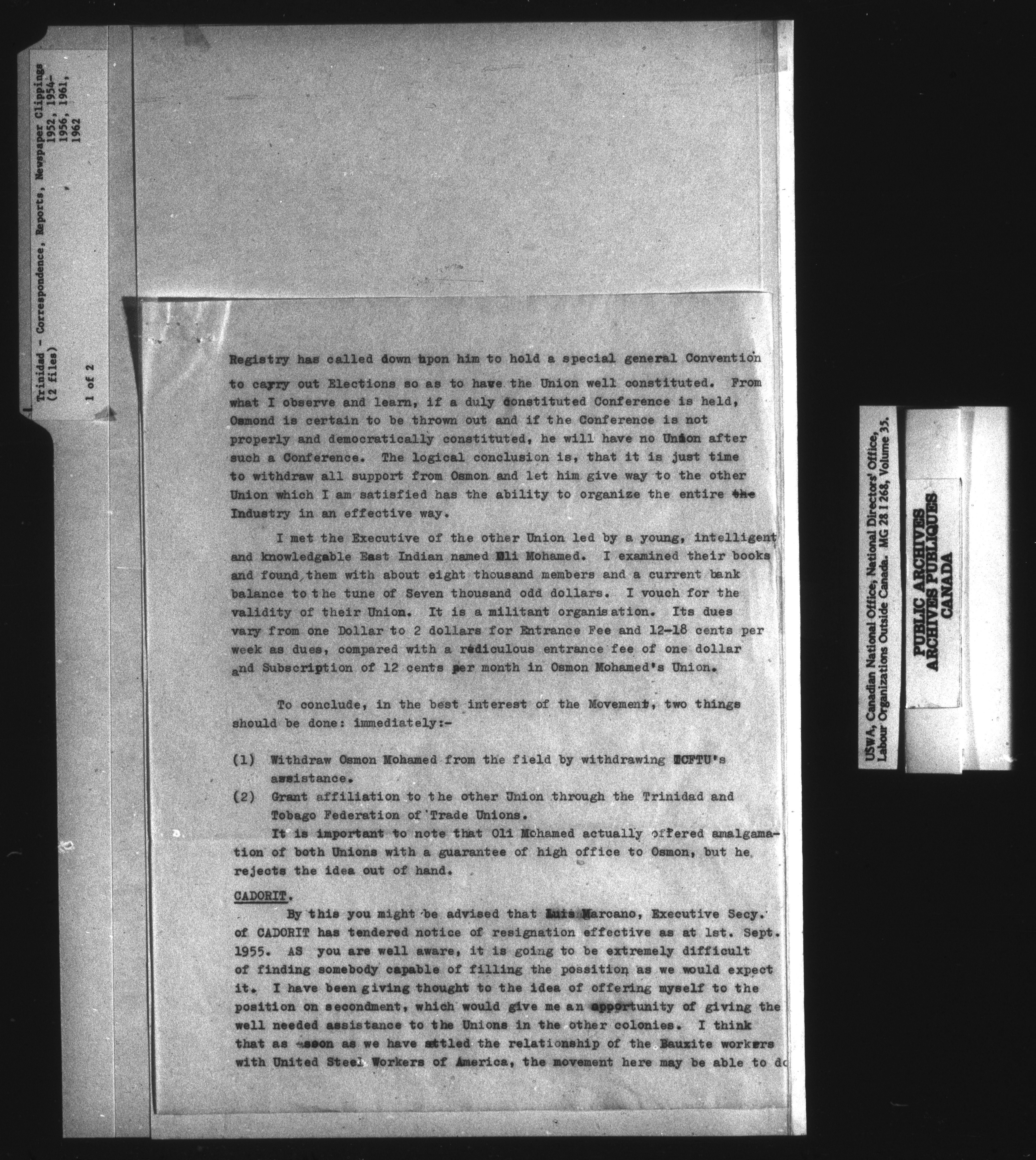 United Steelworkers of America : National Director's Office, Labour Organizations outside Canada - 13130