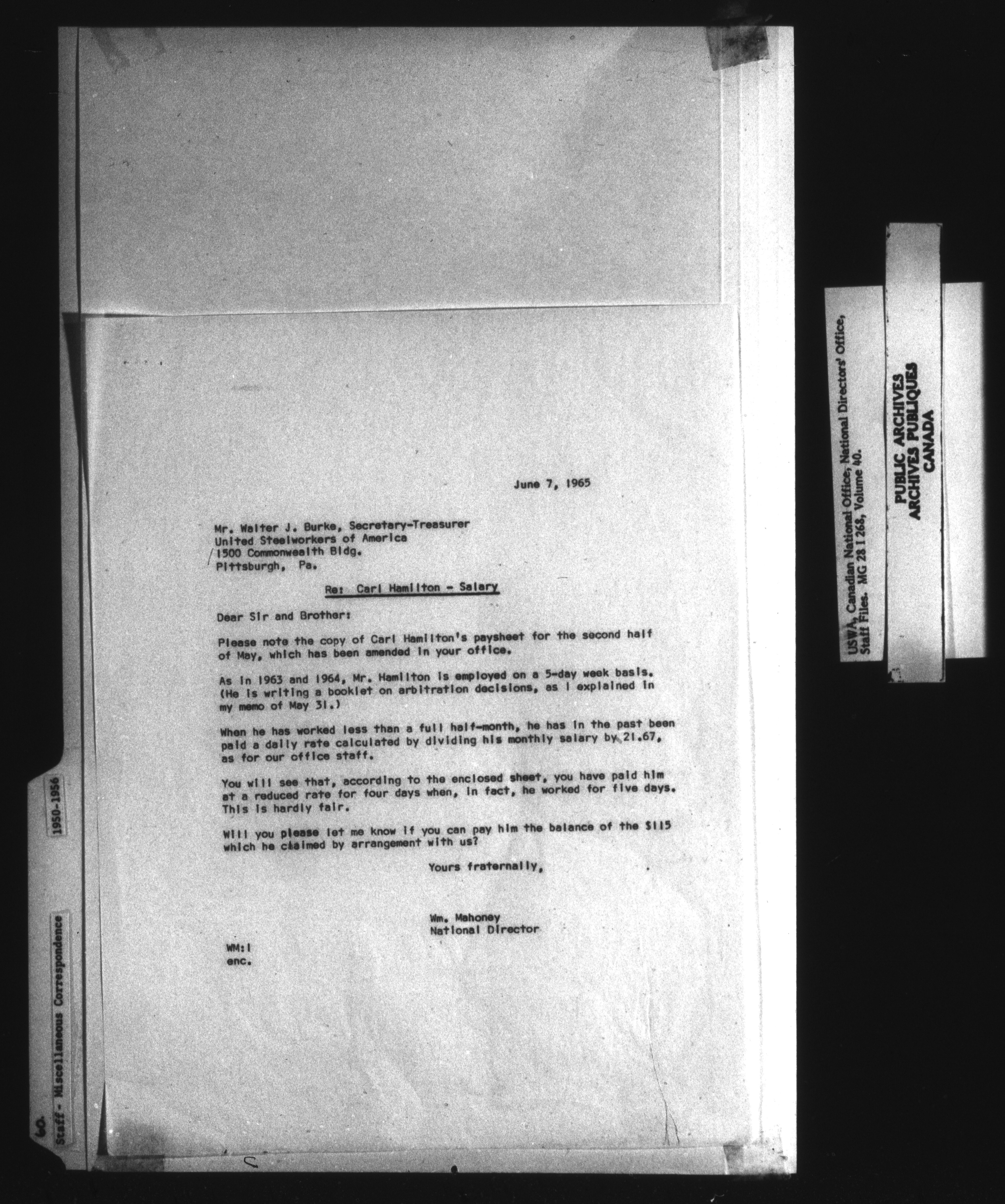 United Steelworkers of America : National Director's Office, Staff files - 13135