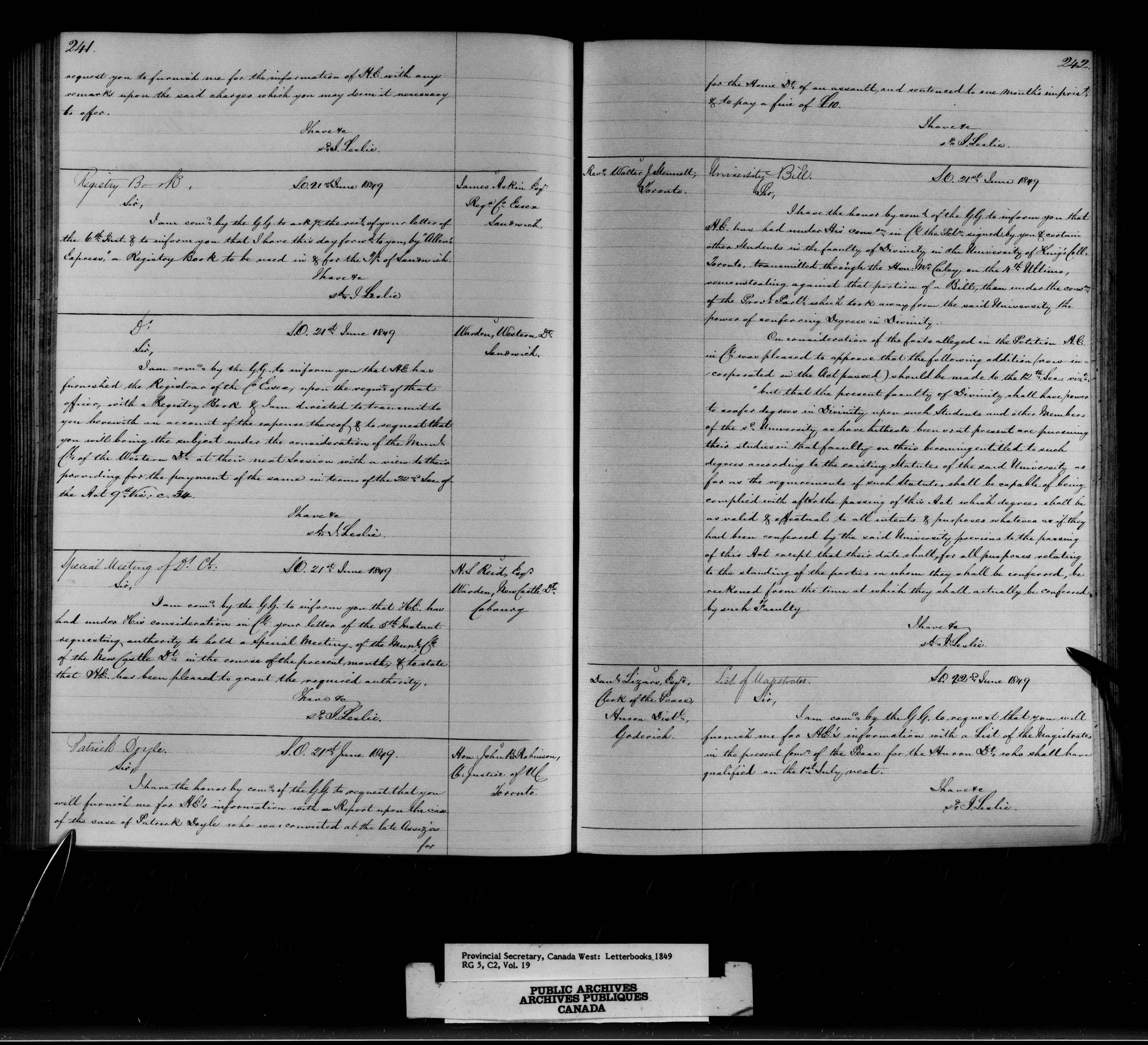 Canada West : Provincial Secretary letterbooks - 13144