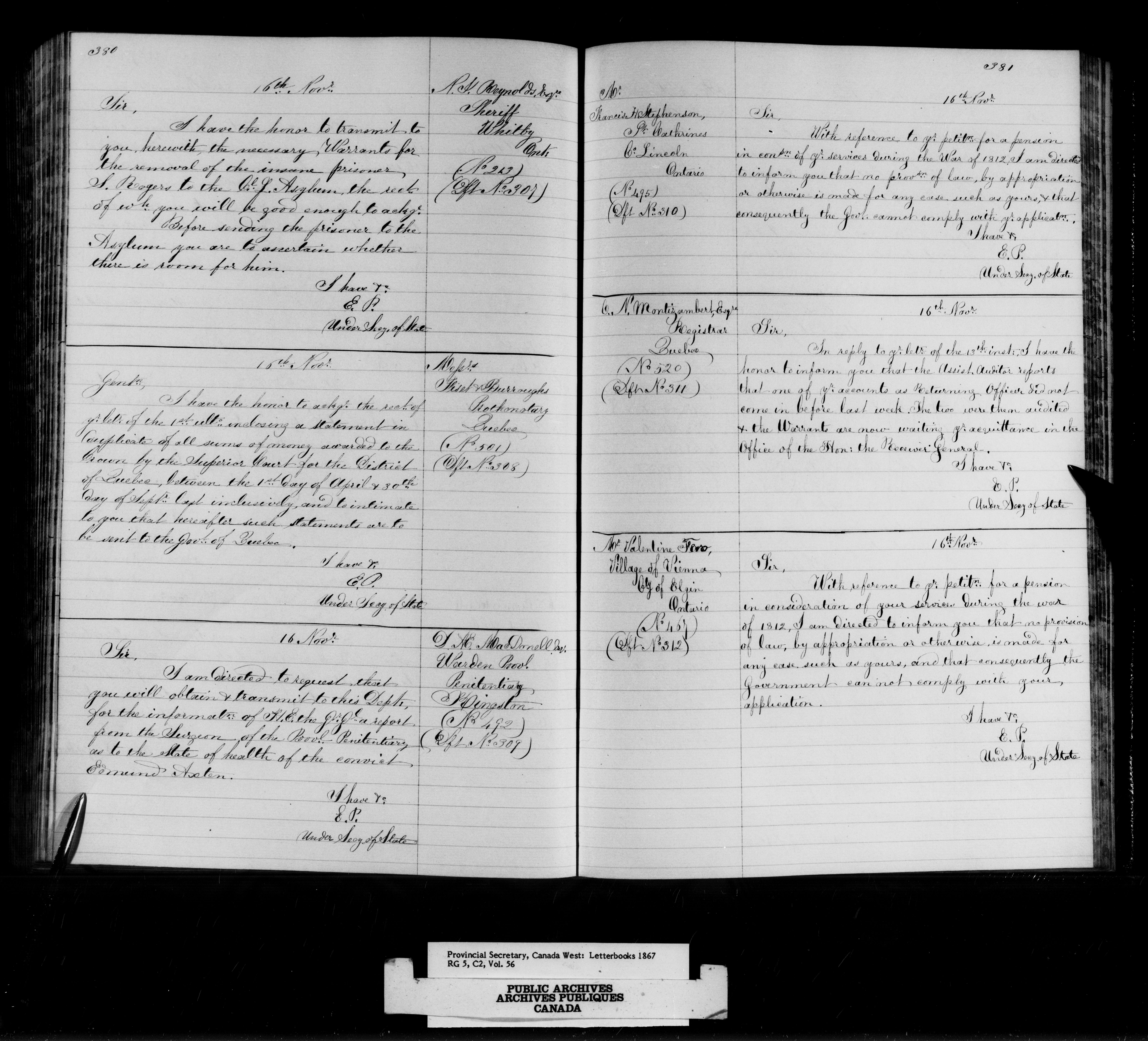 Canada West : Provincial Secretary letterbooks - 13150