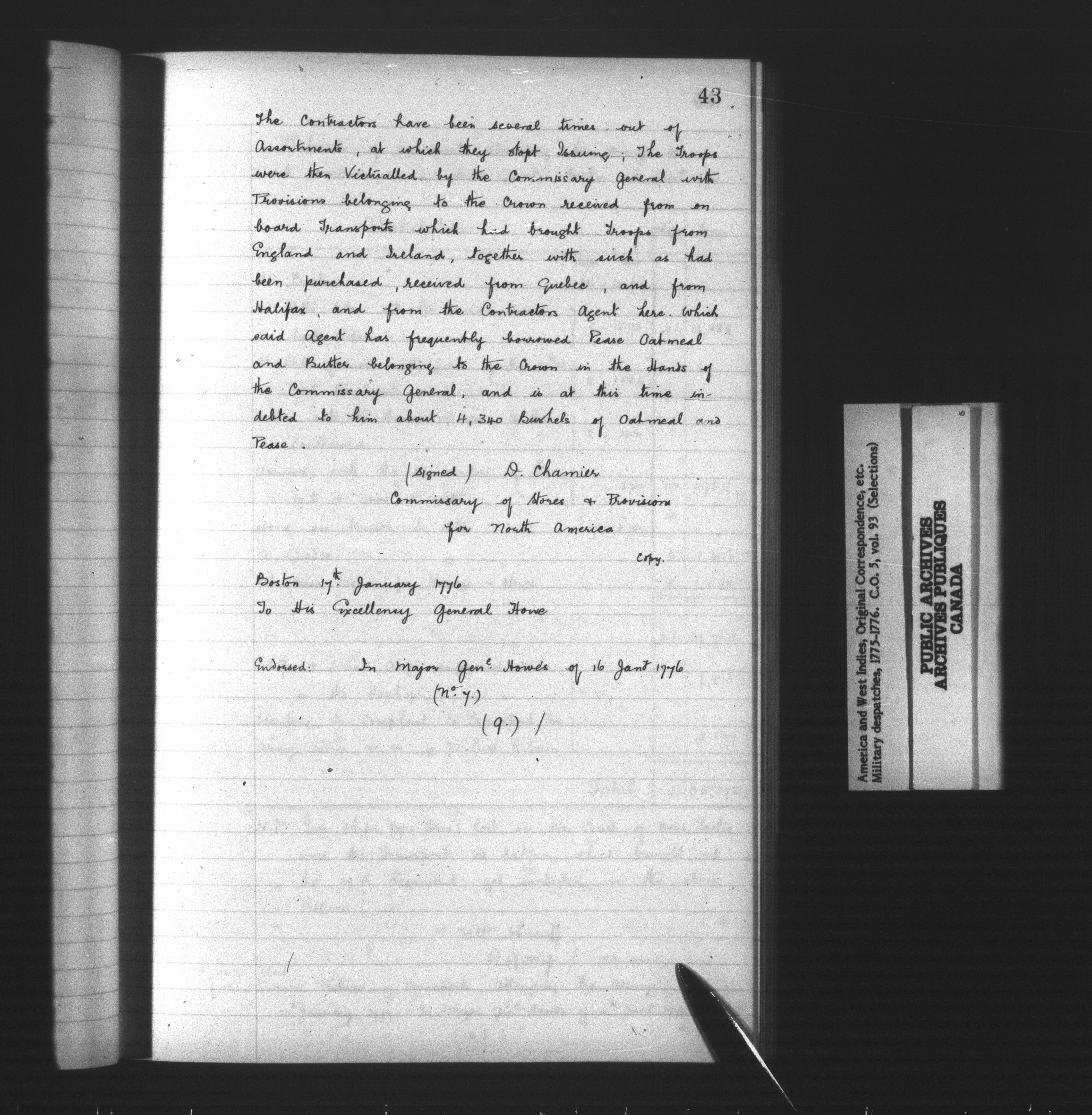 Great Britain, Colonial Office : America and West Indies, Military despatches, 1775-1776 - 13154