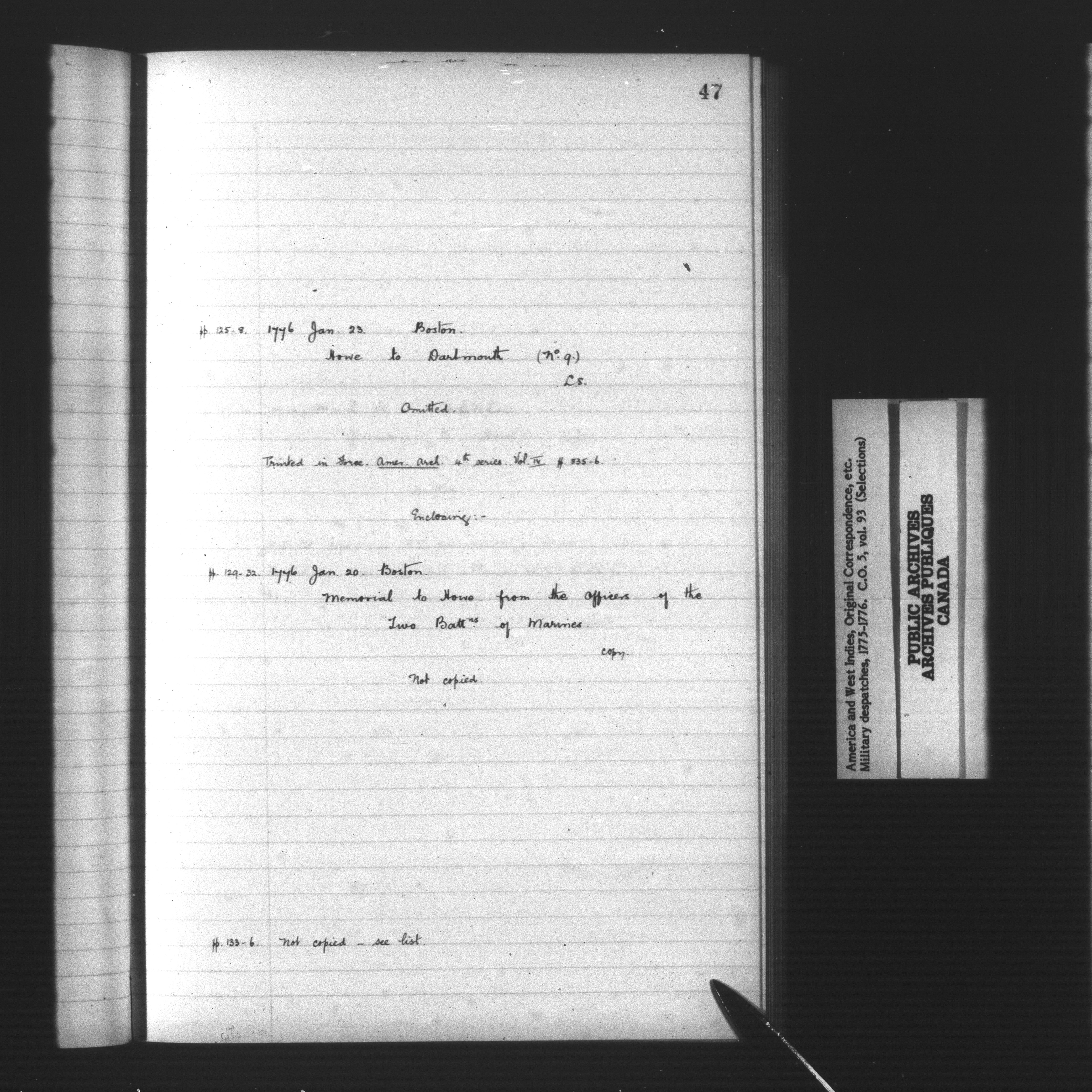 Great Britain, Colonial Office : America and West Indies, Military despatches, 1775-1776 - 13154