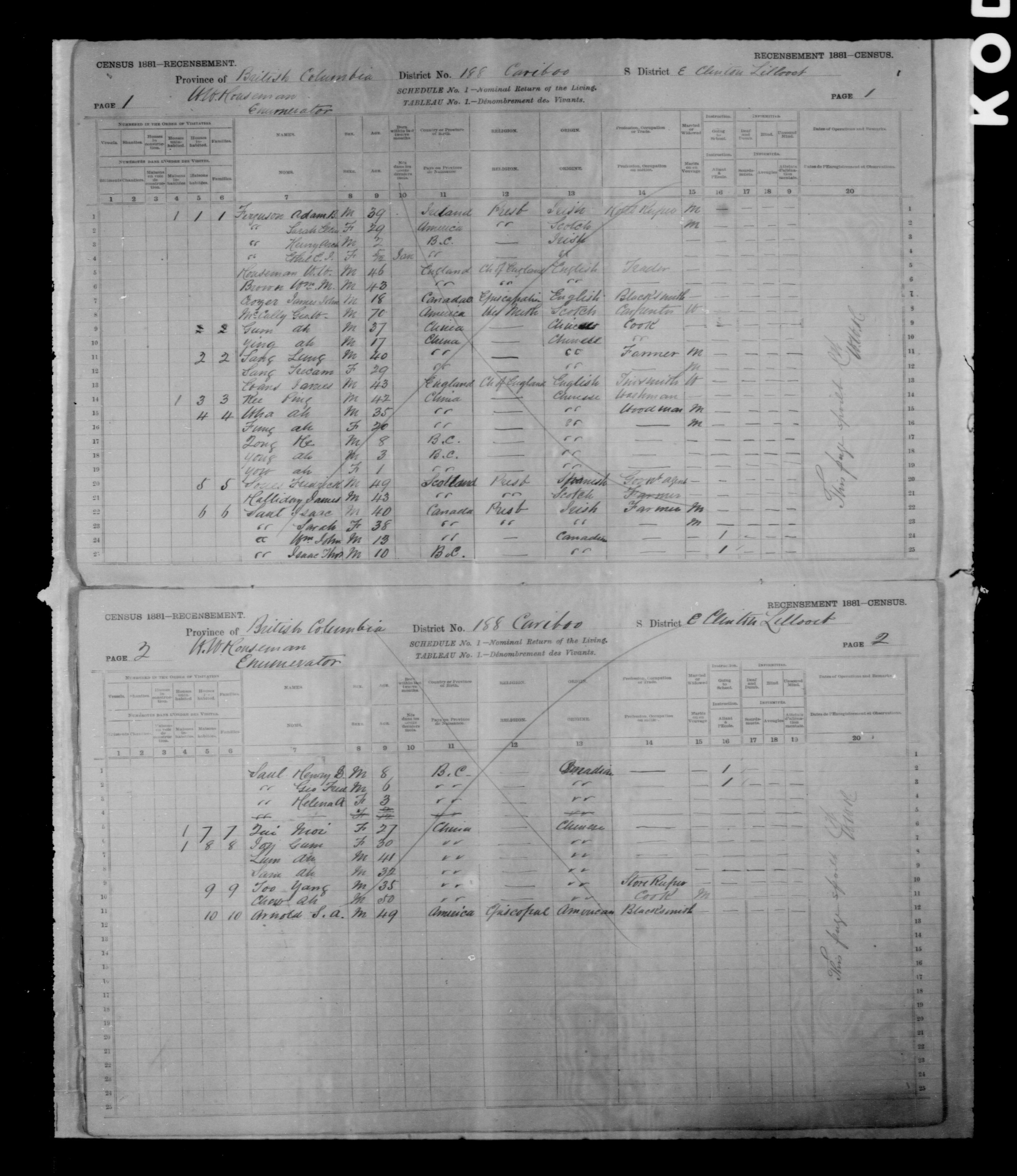 Included in this reel are the census returns for Manitoba, Saskatchewan and Alberta, and British Columbia.