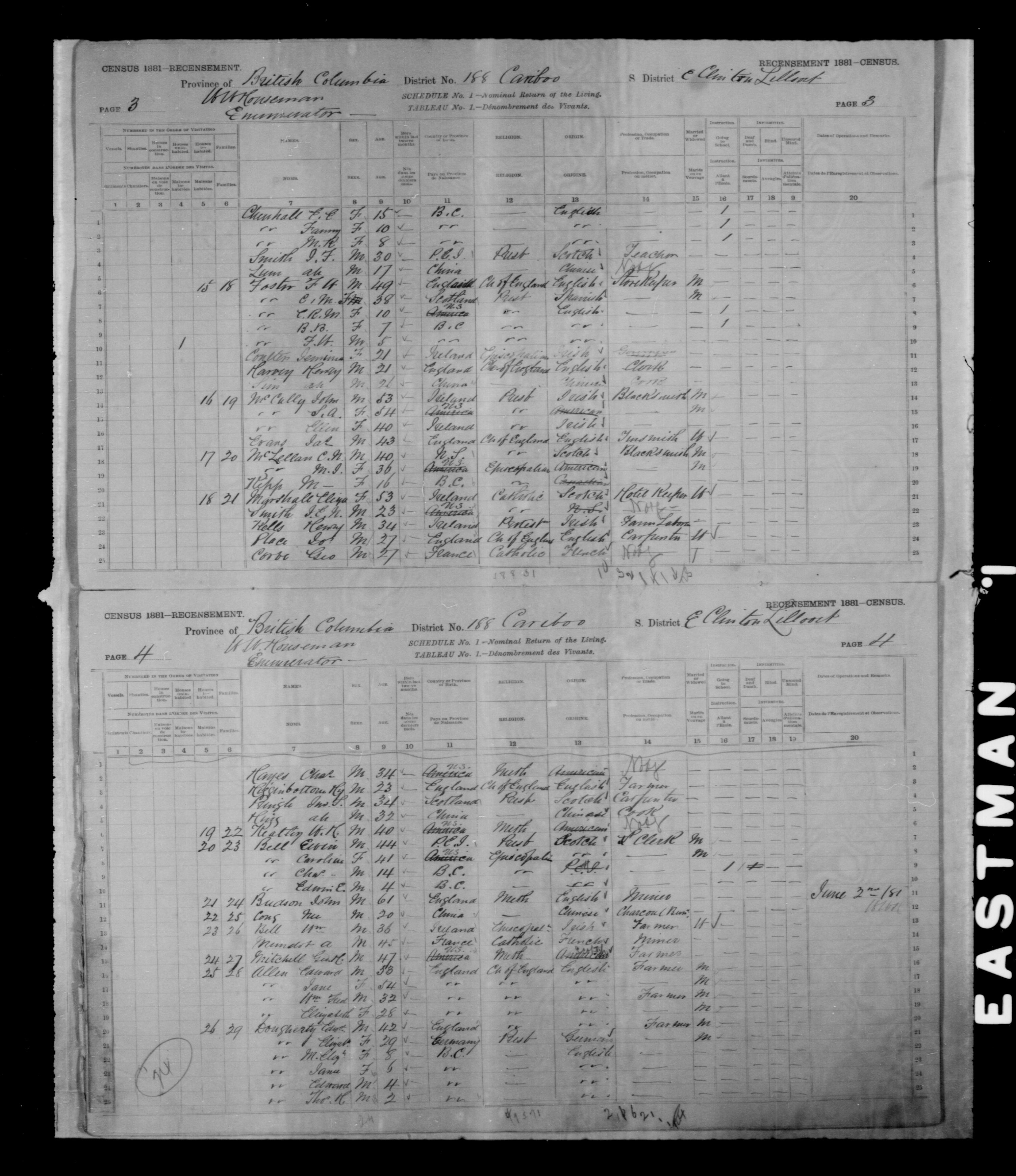 Included in this reel are the census returns for Manitoba, Saskatchewan and Alberta, and British Columbia.