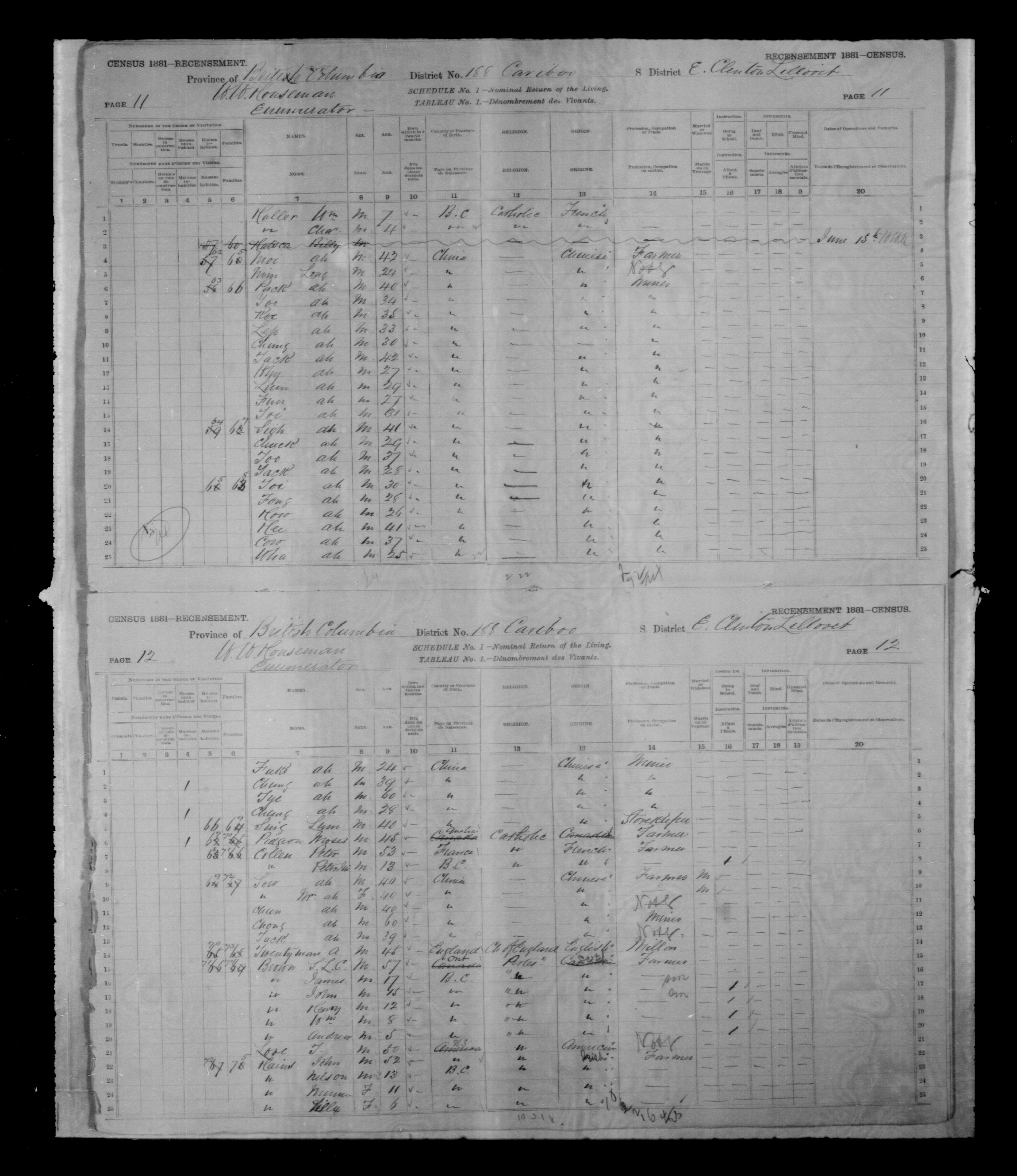 Included in this reel are the census returns for Manitoba, Saskatchewan and Alberta, and British Columbia.
