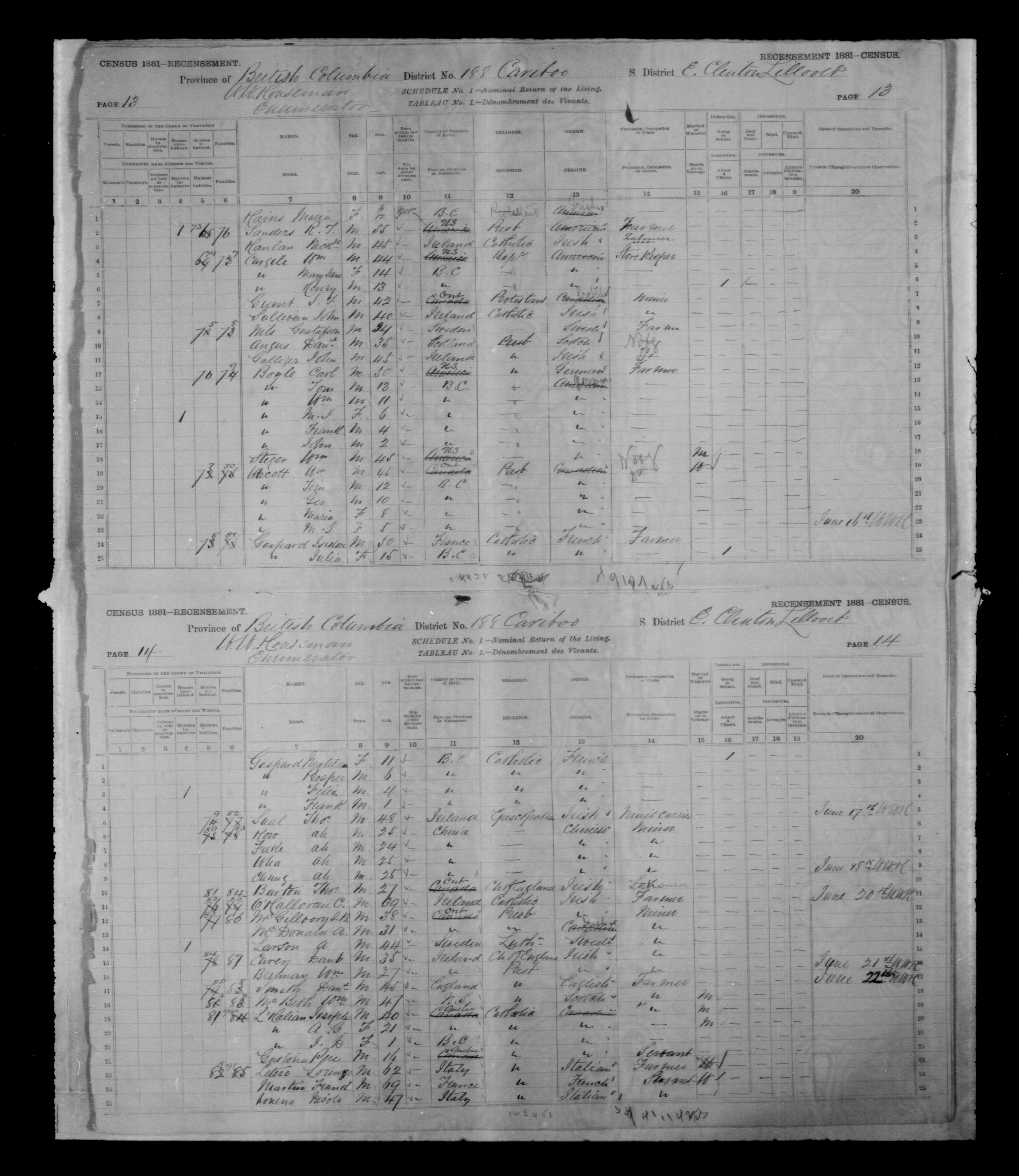 Included in this reel are the census returns for Manitoba, Saskatchewan and Alberta, and British Columbia.