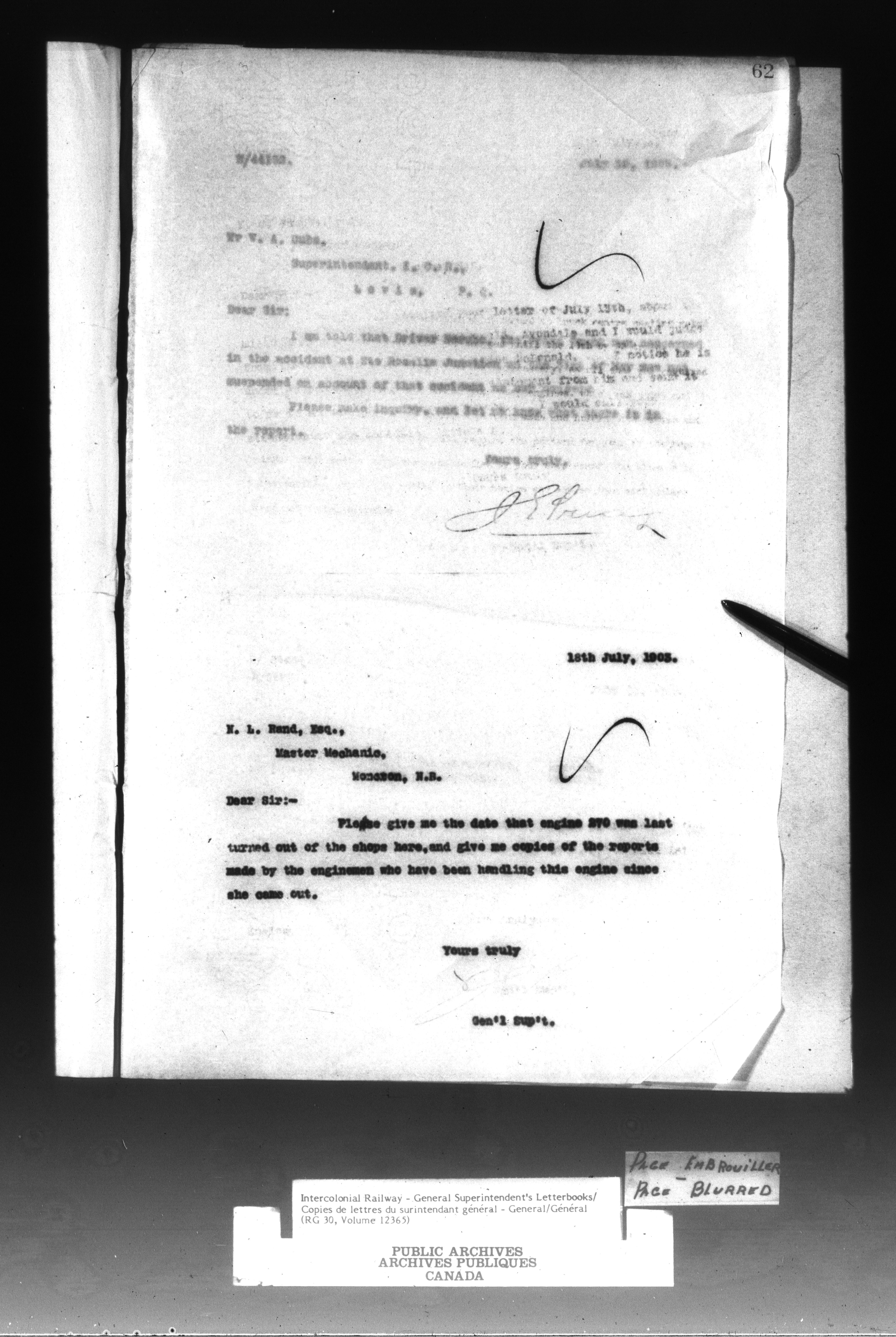 Canadian Government Railways : Office of the General Superintendent - 13287