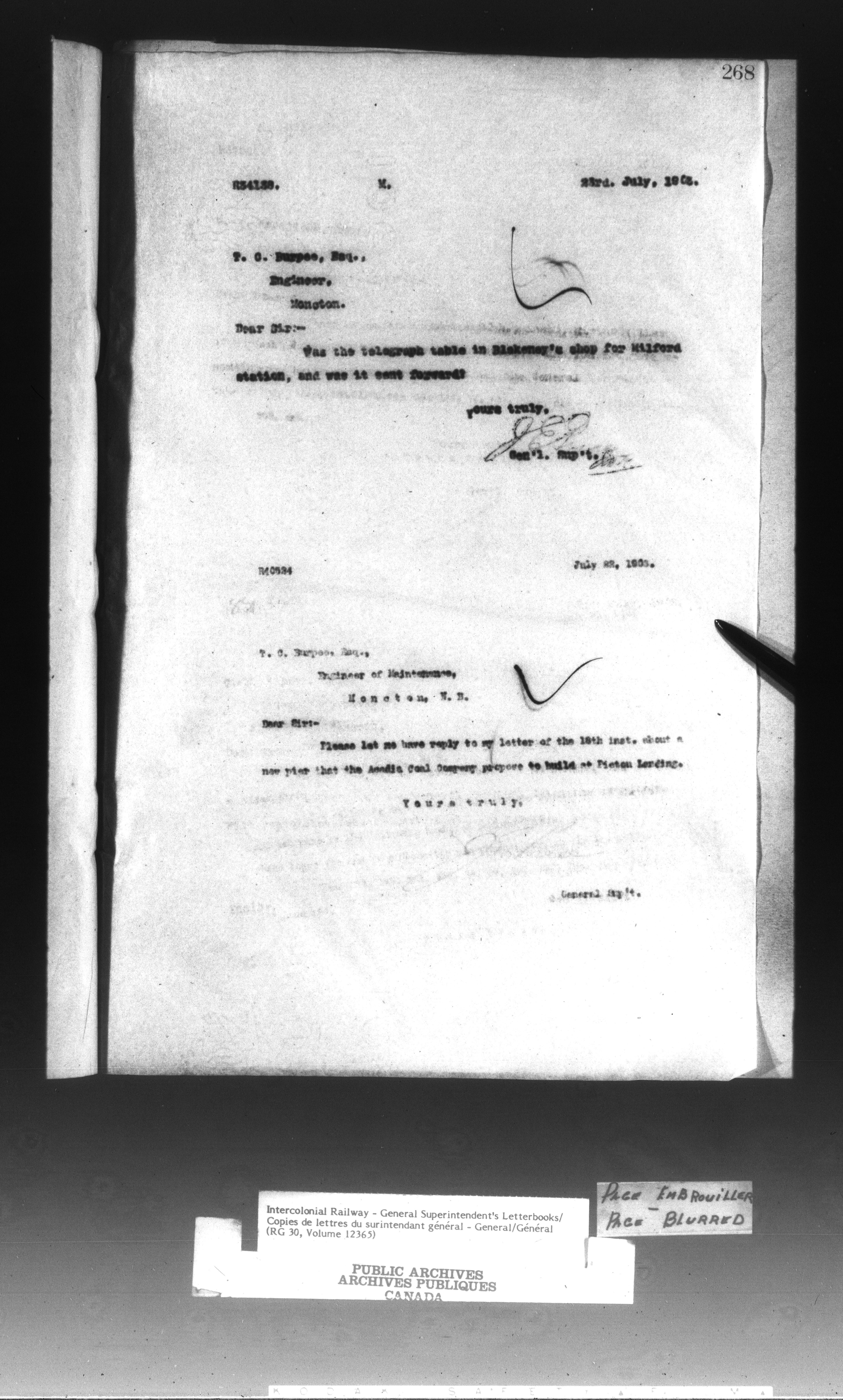 Canadian Government Railways : Office of the General Superintendent correspondence : C-13288