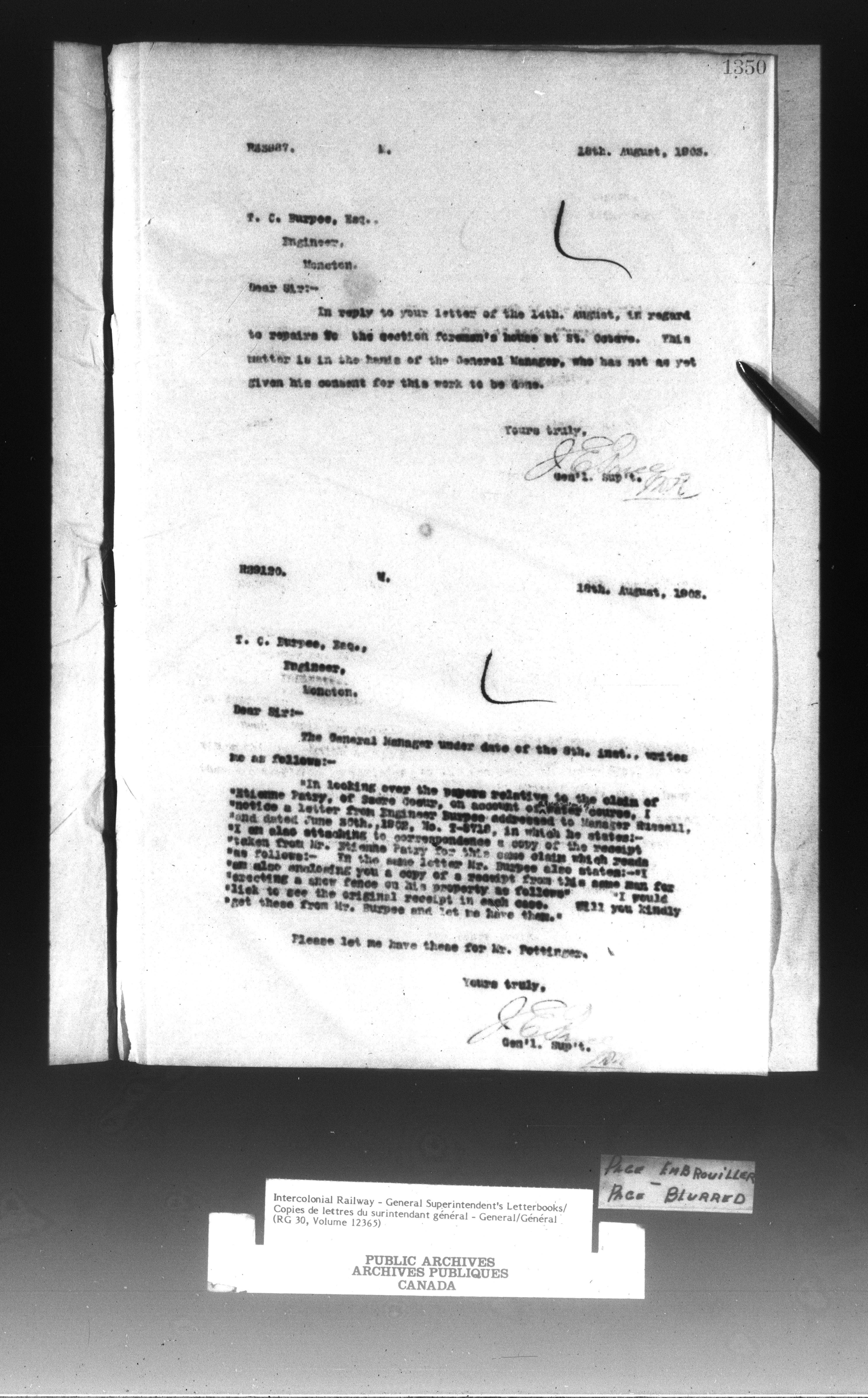 Canadian Government Railways : Office of the General Superintendent correspondence : C-13289