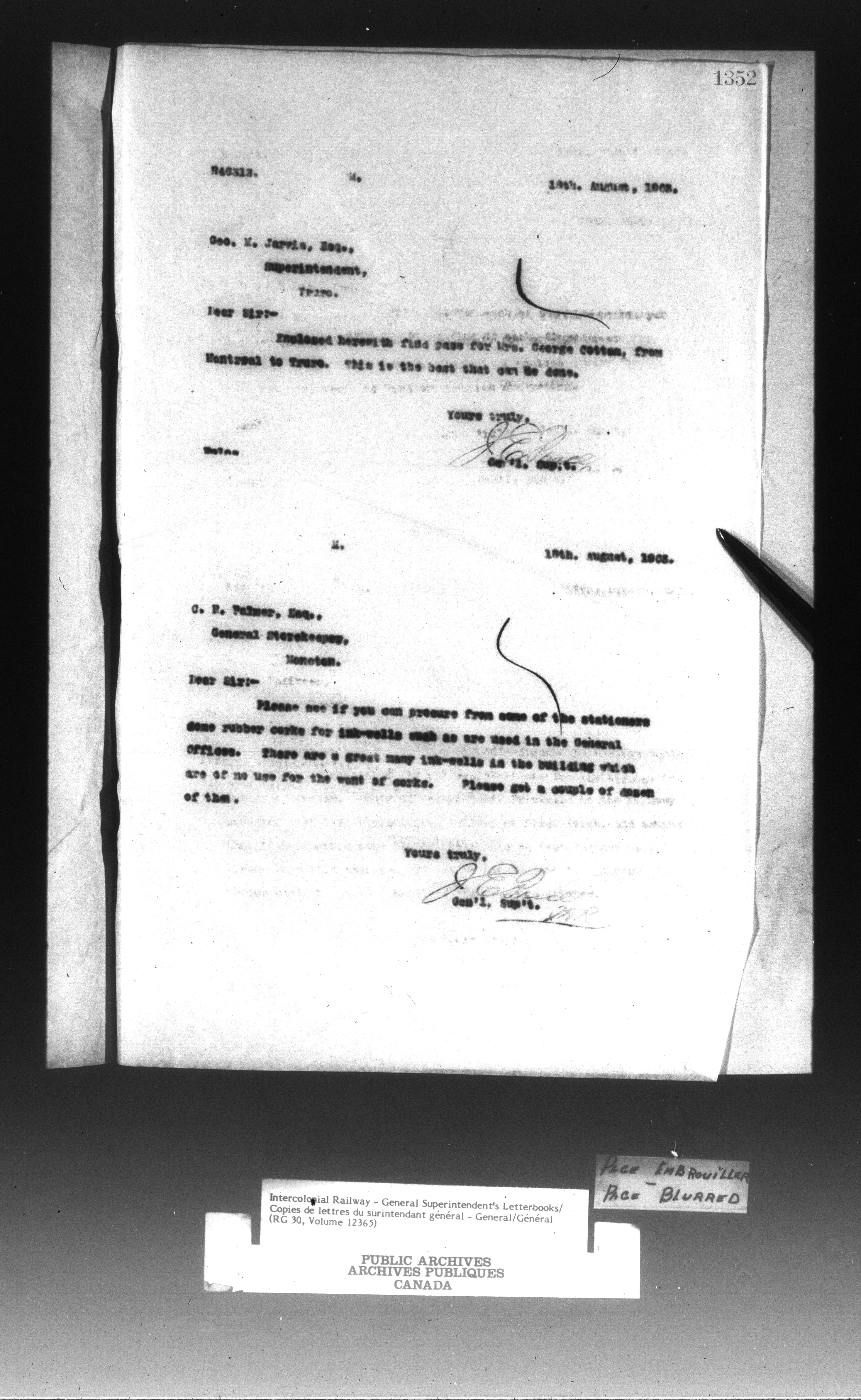 Canadian Government Railways : Office of the General Superintendent correspondence : C-13289