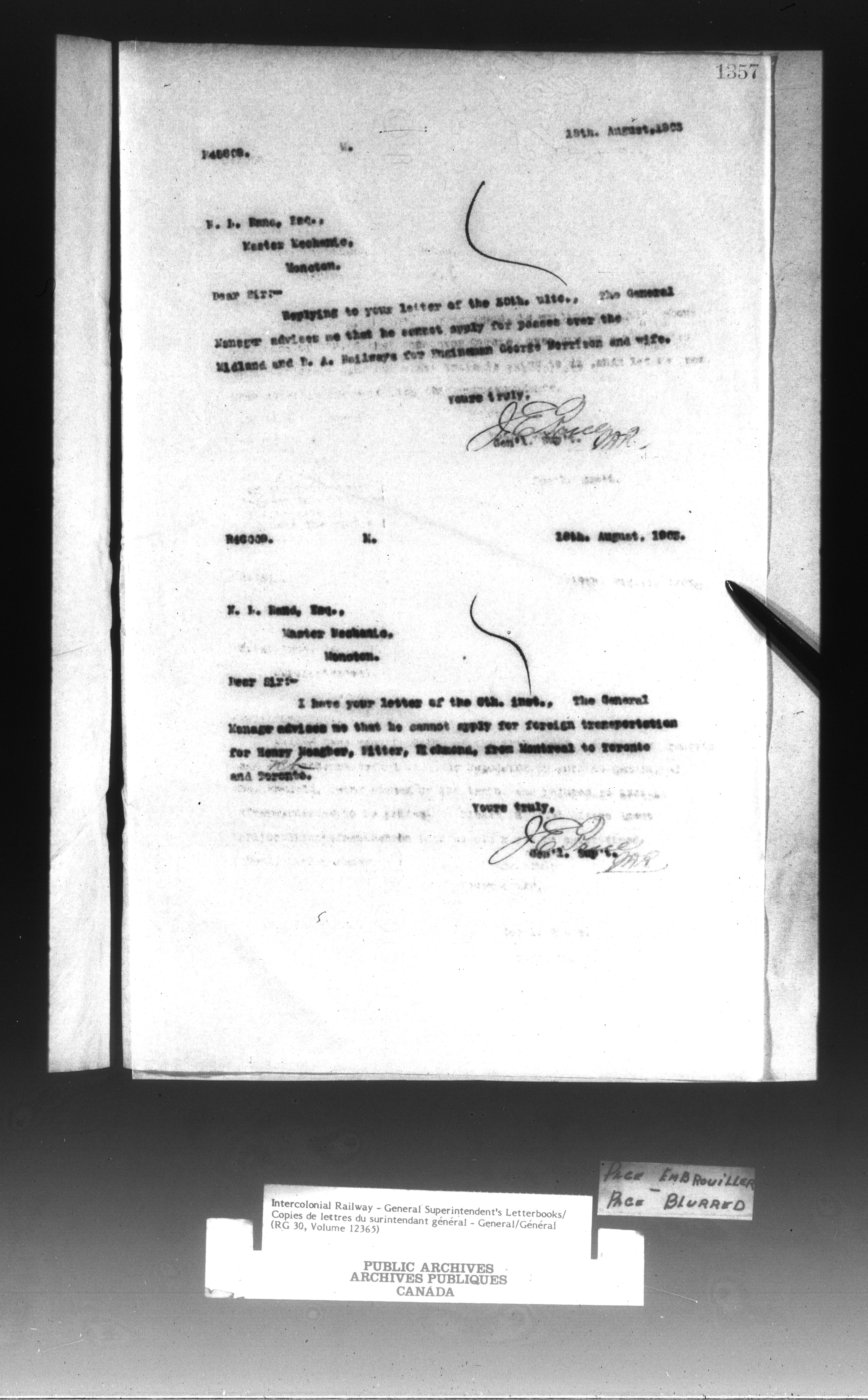 Canadian Government Railways : Office of the General Superintendent correspondence : C-13289
