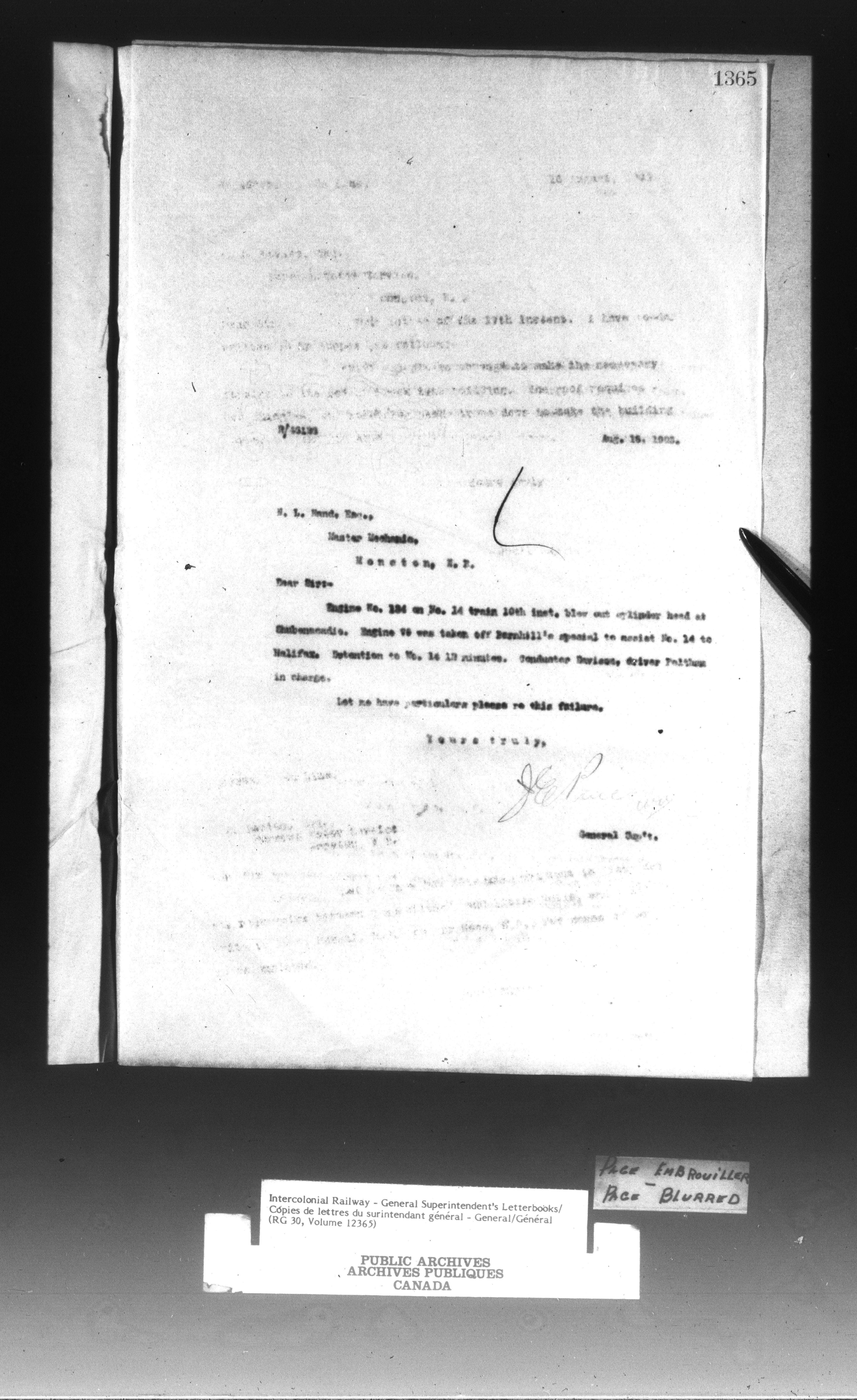 Canadian Government Railways : Office of the General Superintendent correspondence : C-13289