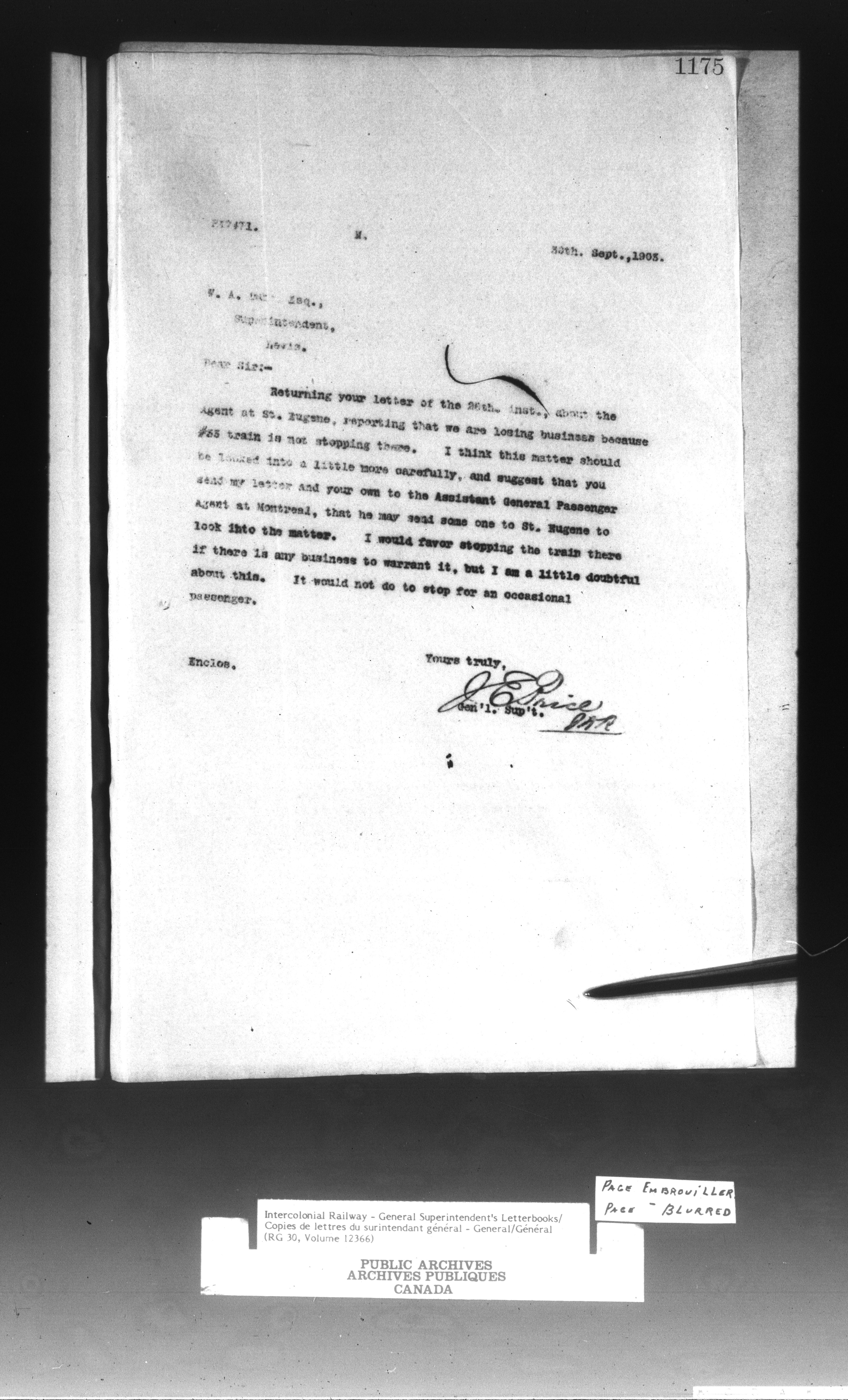 Canadian Government Railways : Office of the General Superintendent - 13290