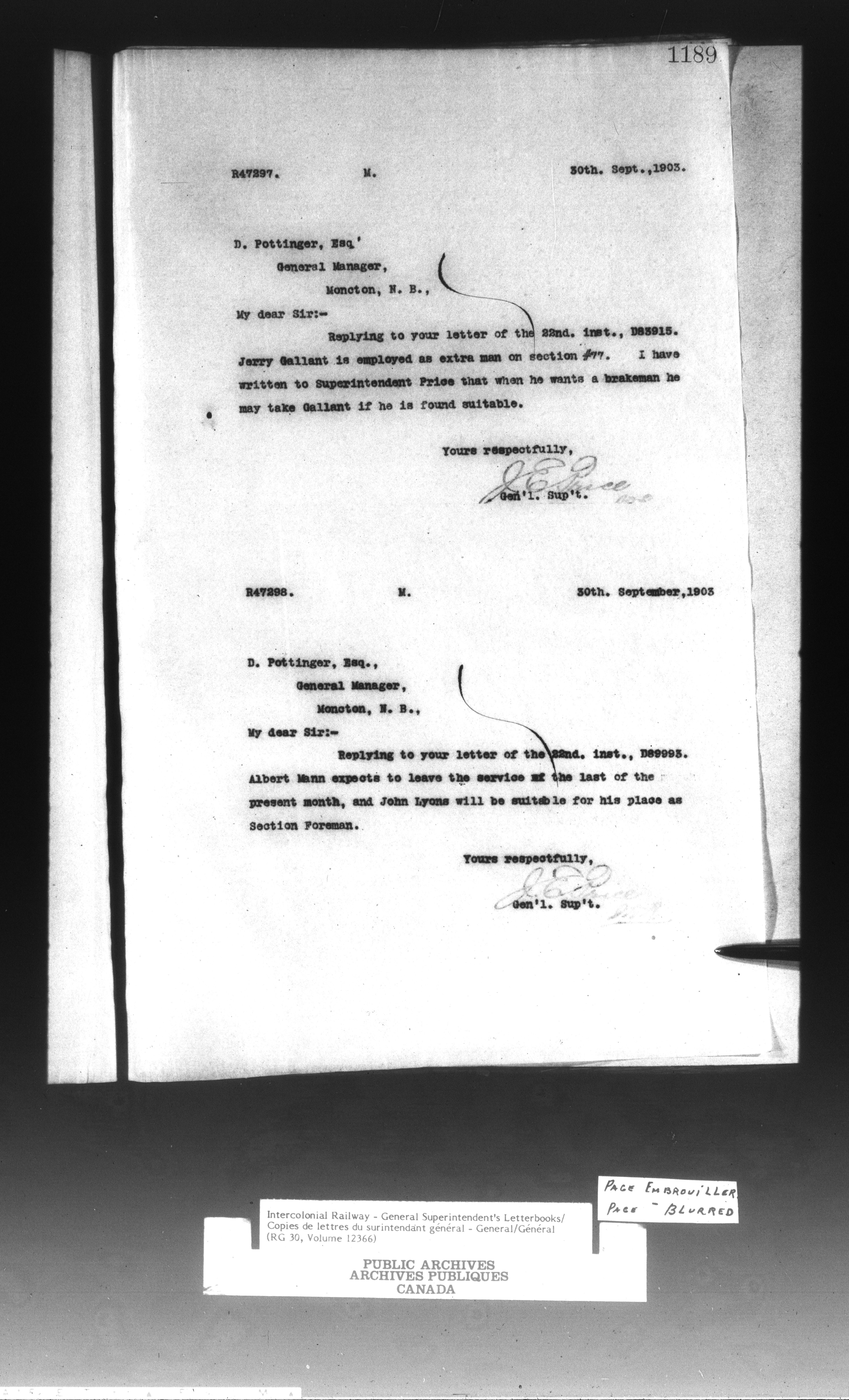 Canadian Government Railways : Office of the General Superintendent - 13290
