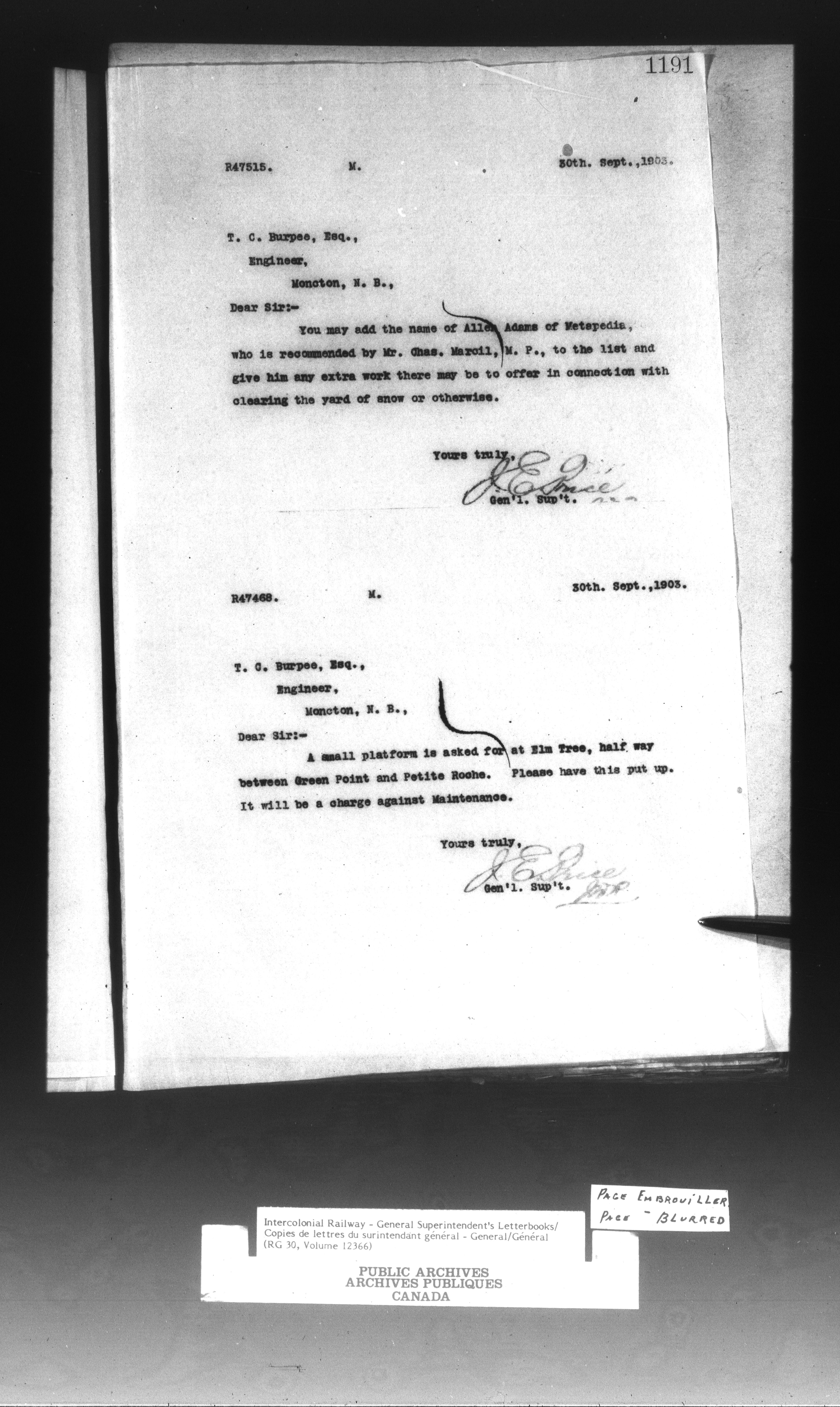 Canadian Government Railways : Office of the General Superintendent - 13290