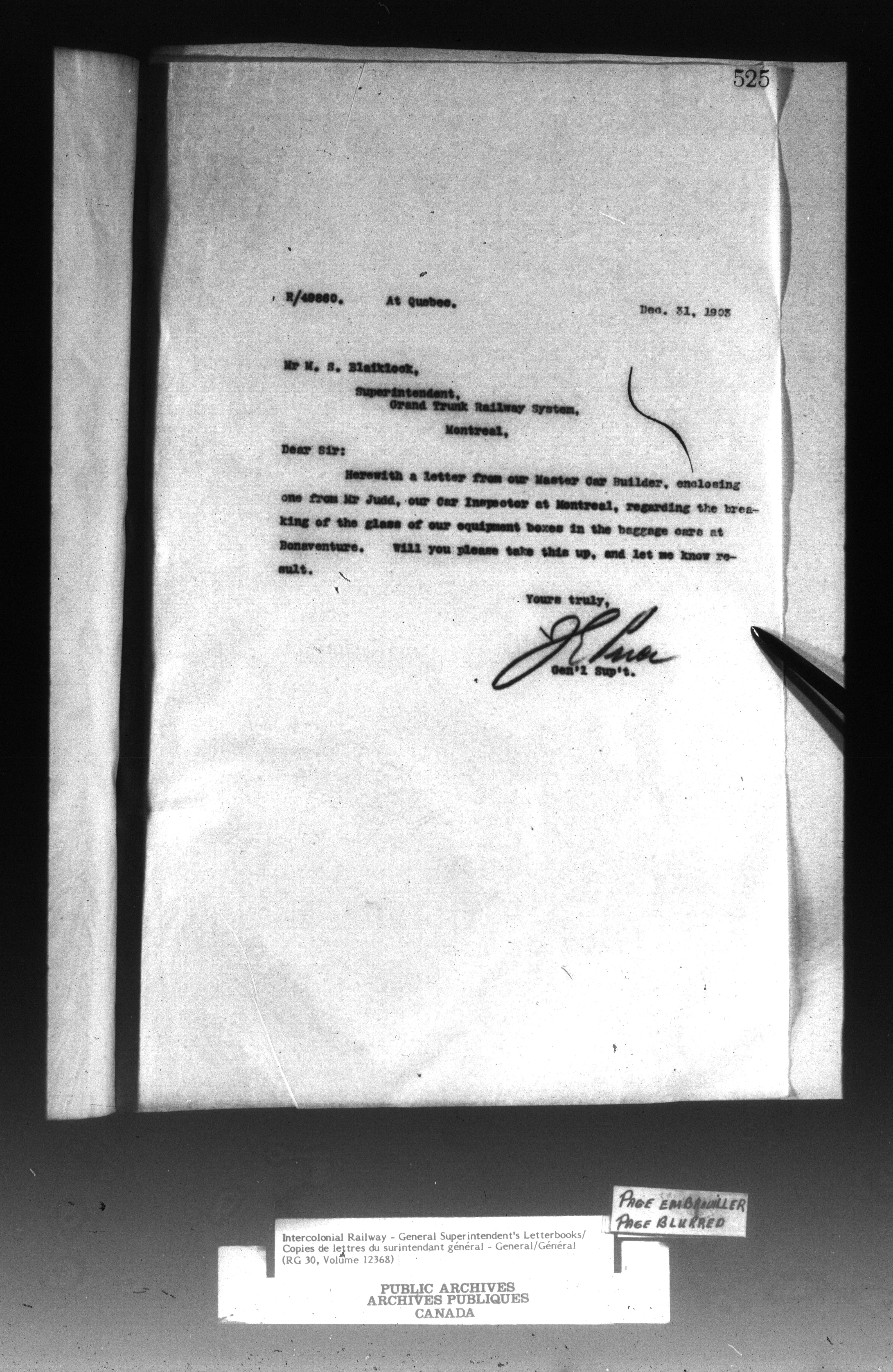 Canadian Government Railways : Office of the General Superintendent - 13291