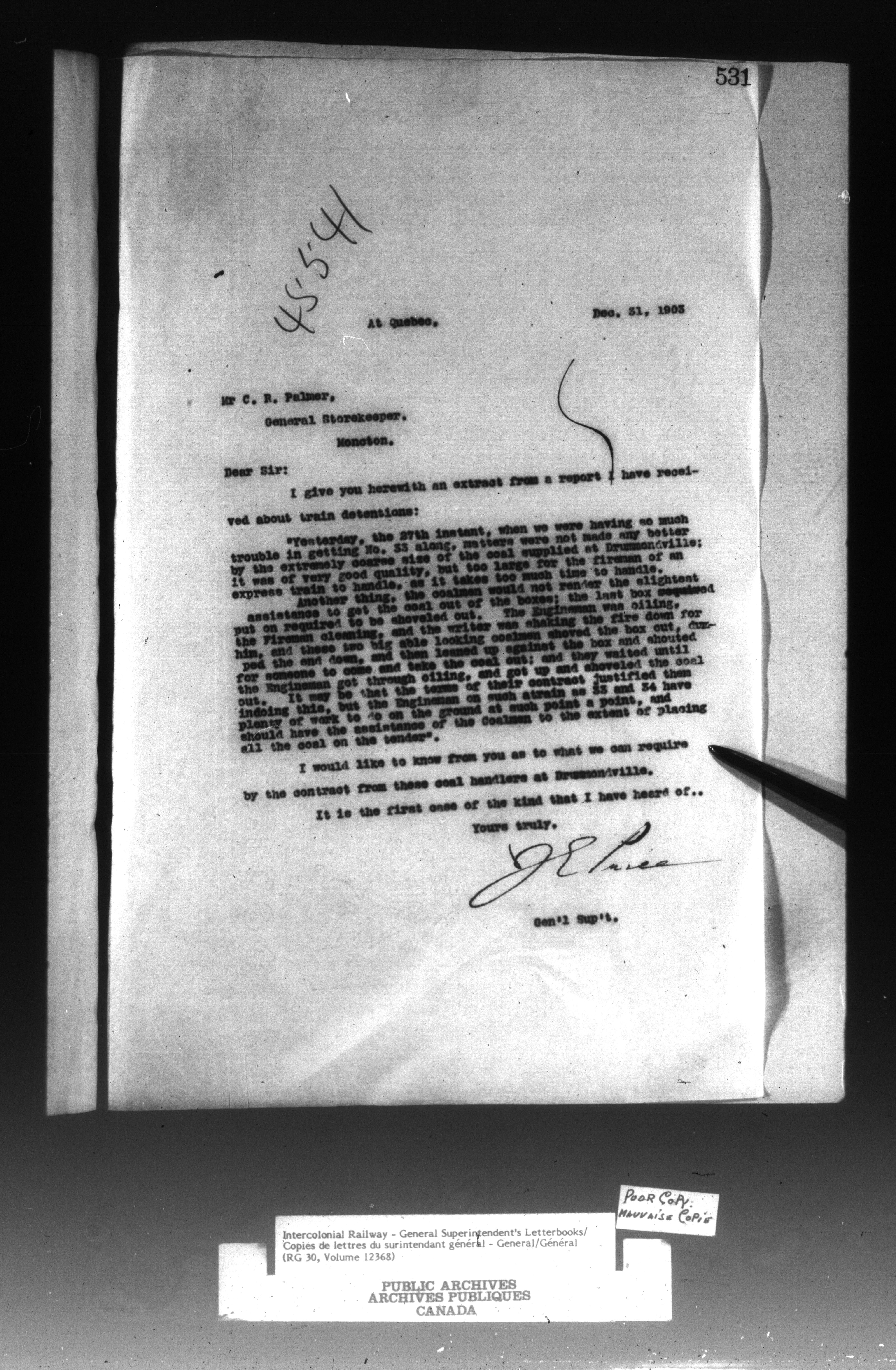 Canadian Government Railways : Office of the General Superintendent - 13291