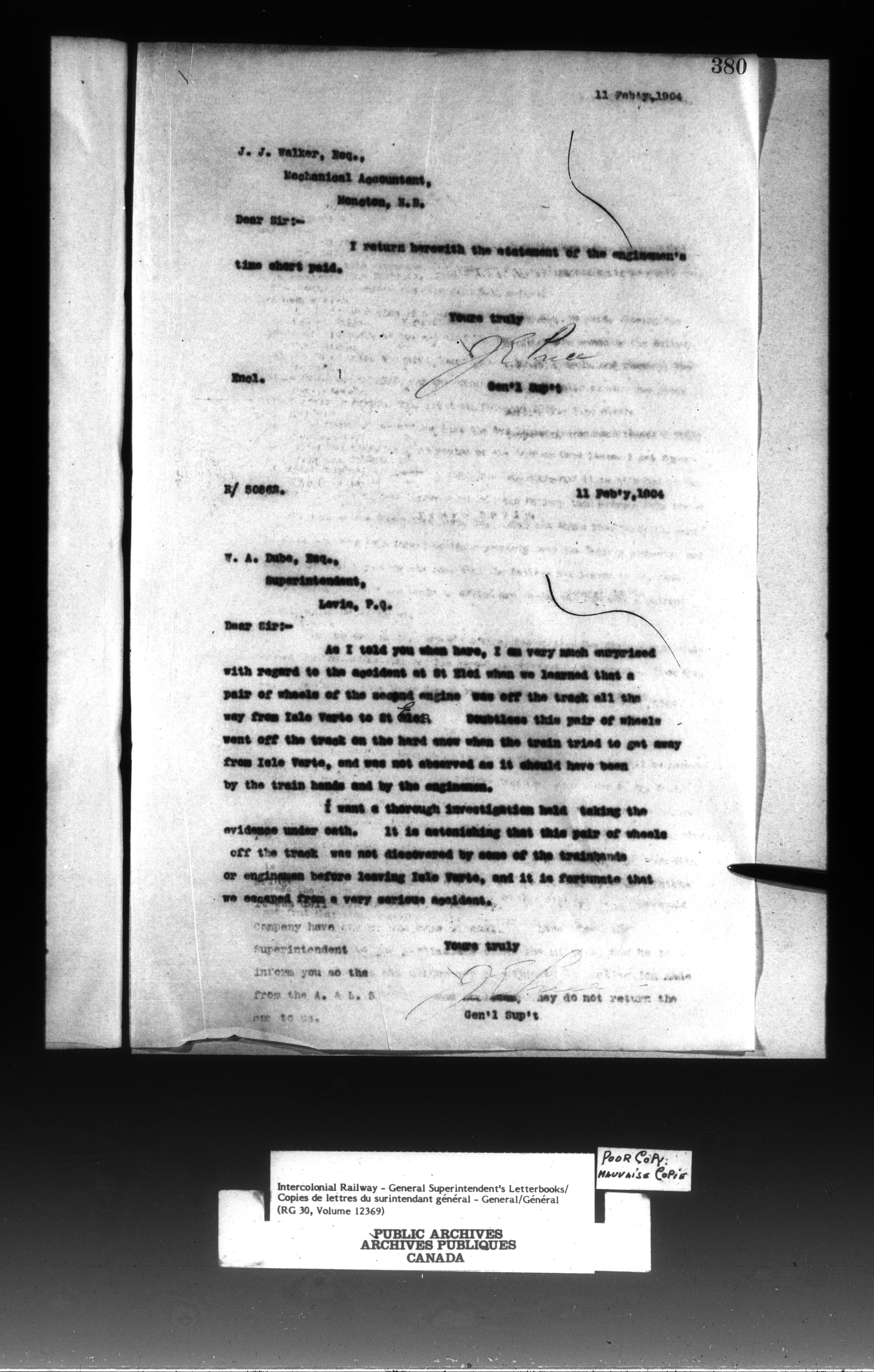 Canadian Government Railways : Office of the General Superintendent - 13293