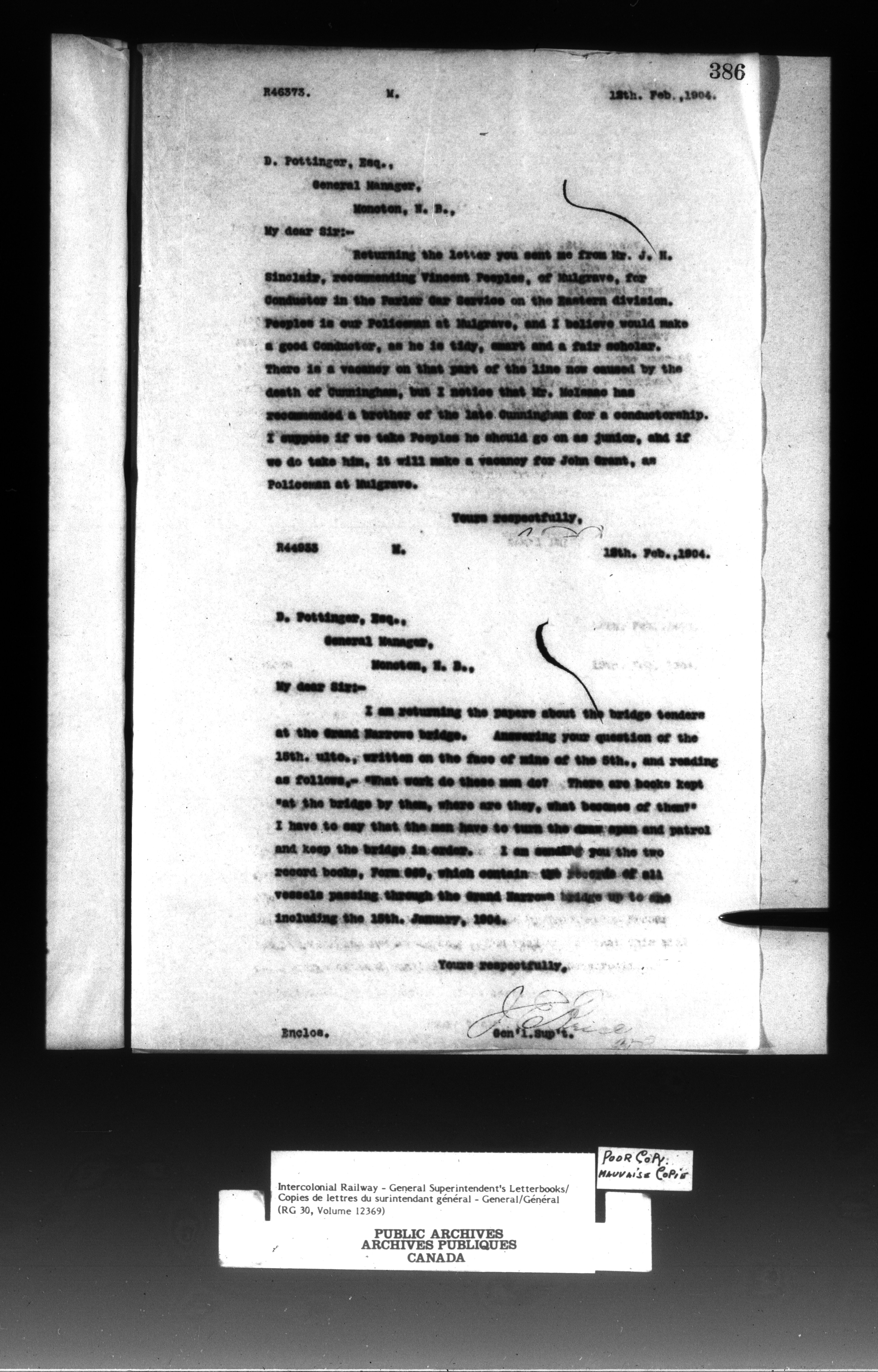 Canadian Government Railways : Office of the General Superintendent - 13293