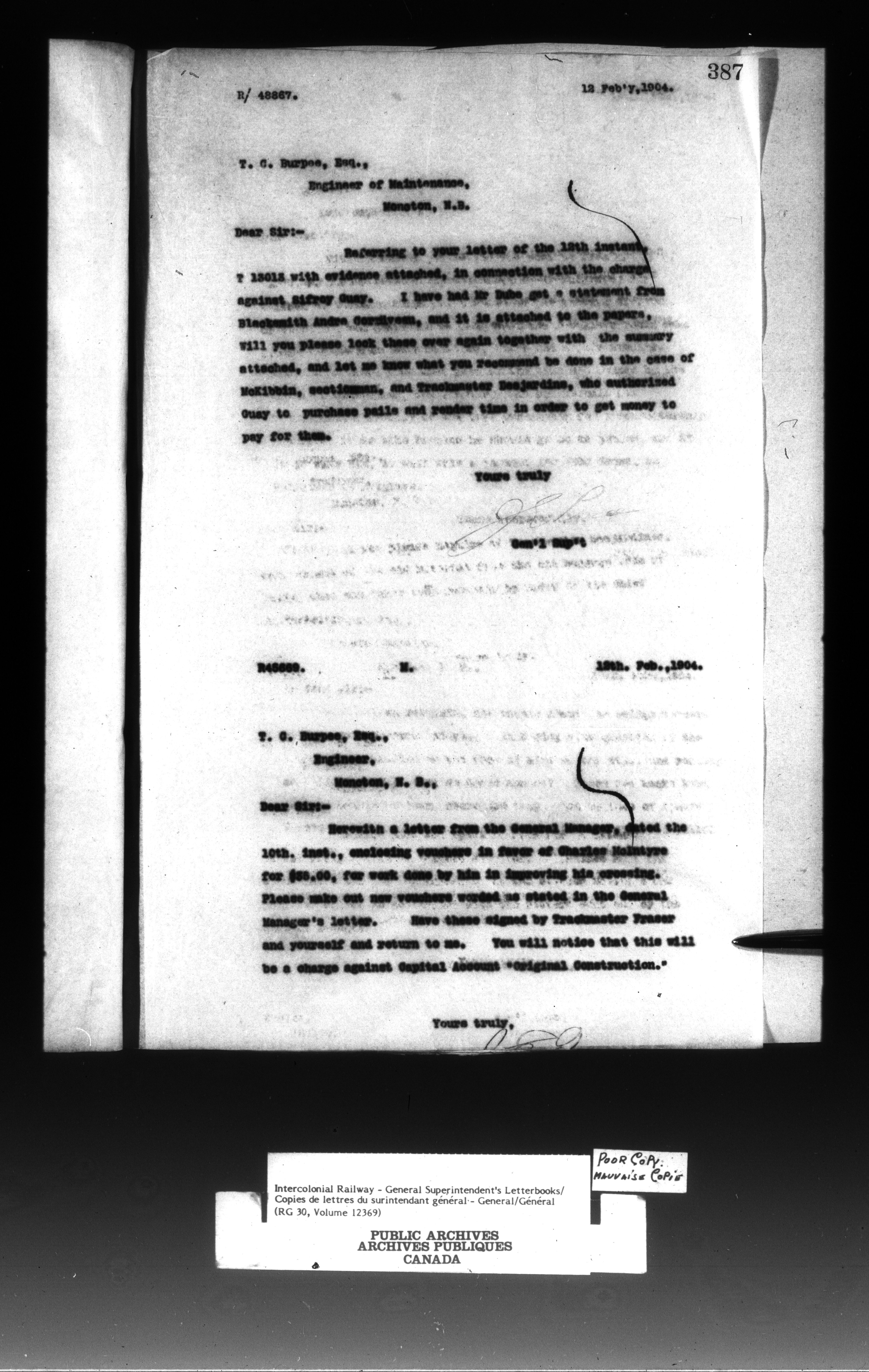 Canadian Government Railways : Office of the General Superintendent - 13293