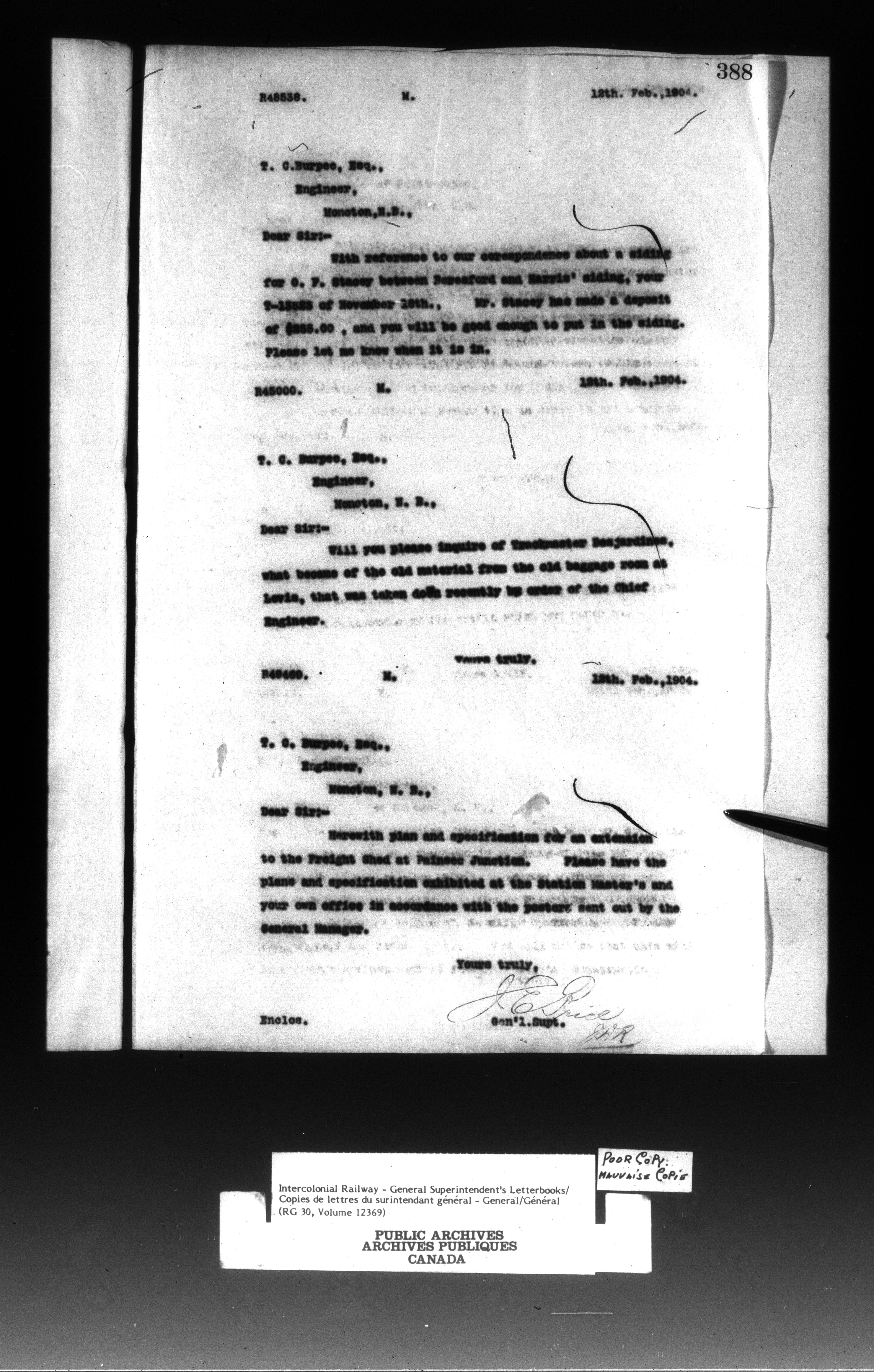 Canadian Government Railways : Office of the General Superintendent - 13293