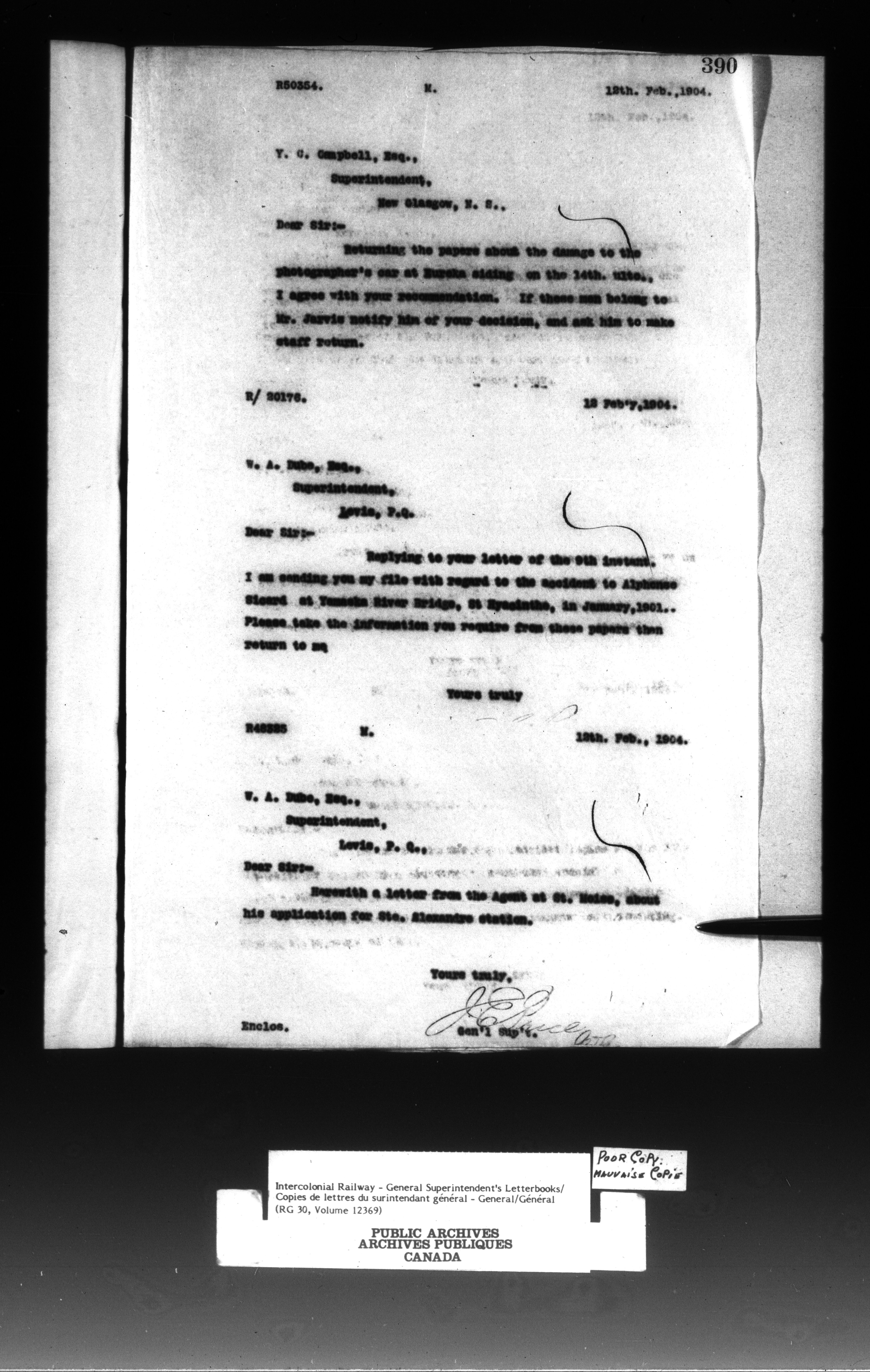 Canadian Government Railways : Office of the General Superintendent - 13293