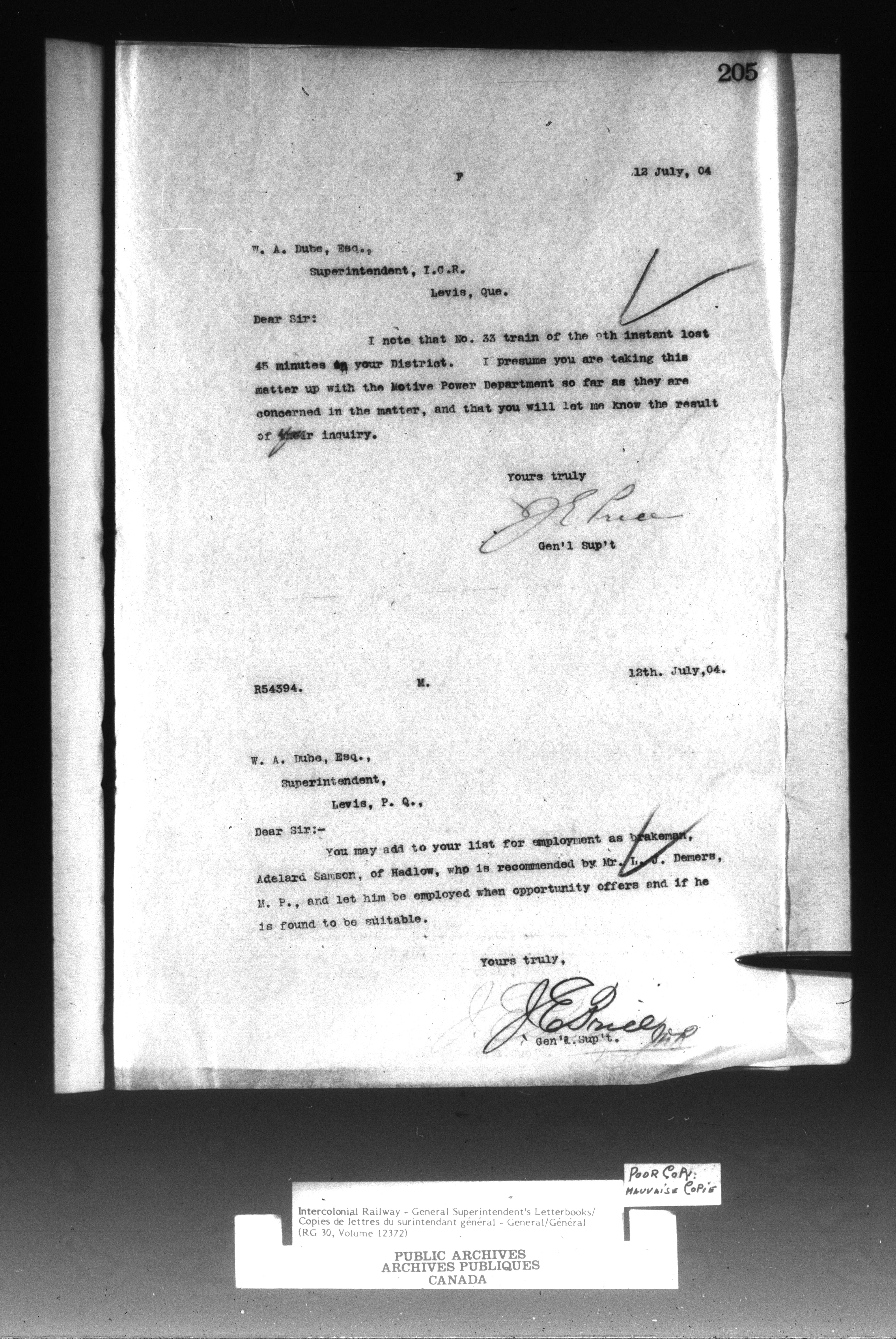 Canadian Government Railways : Office of the General Superintendent - 13296