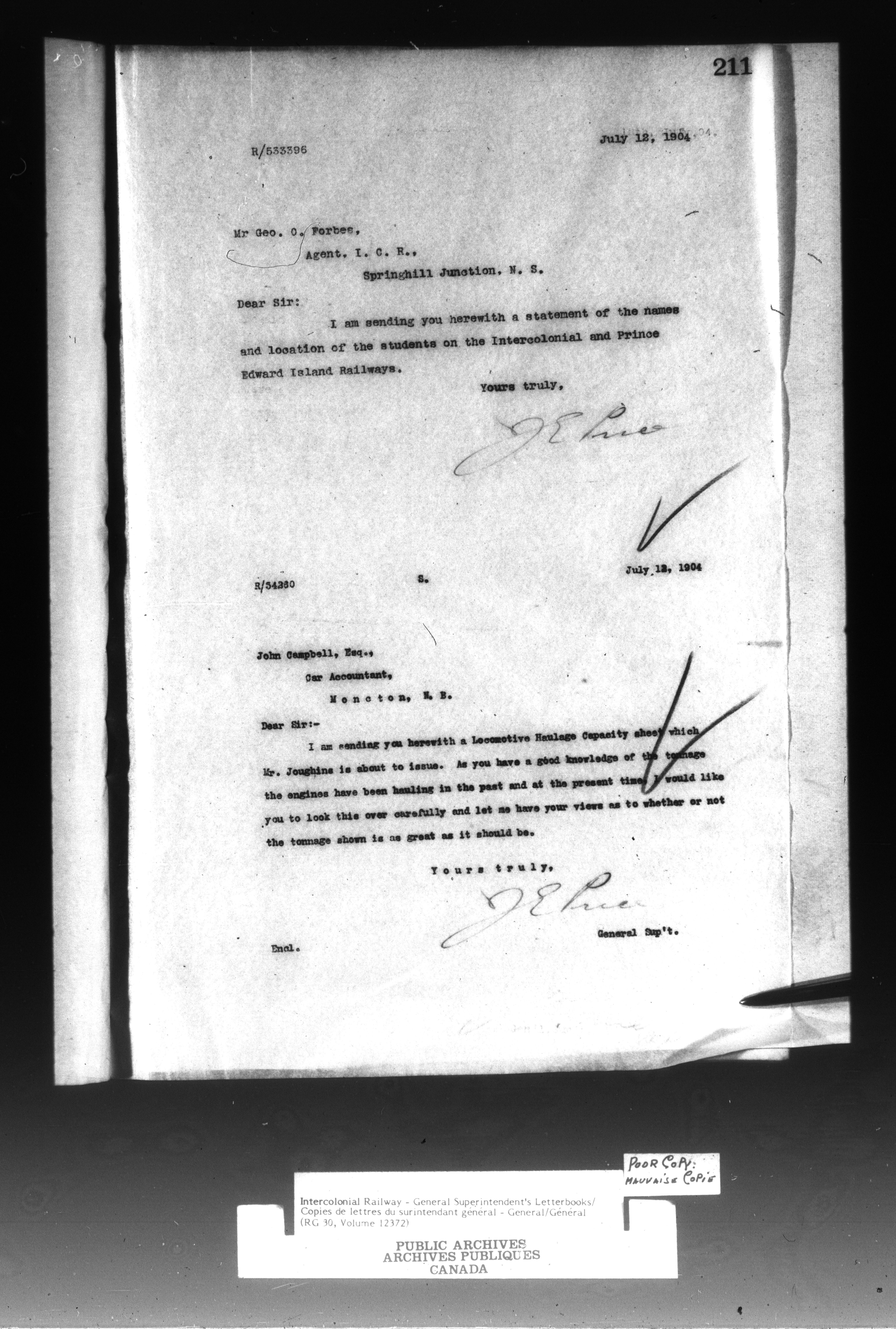 Canadian Government Railways : Office of the General Superintendent - 13296