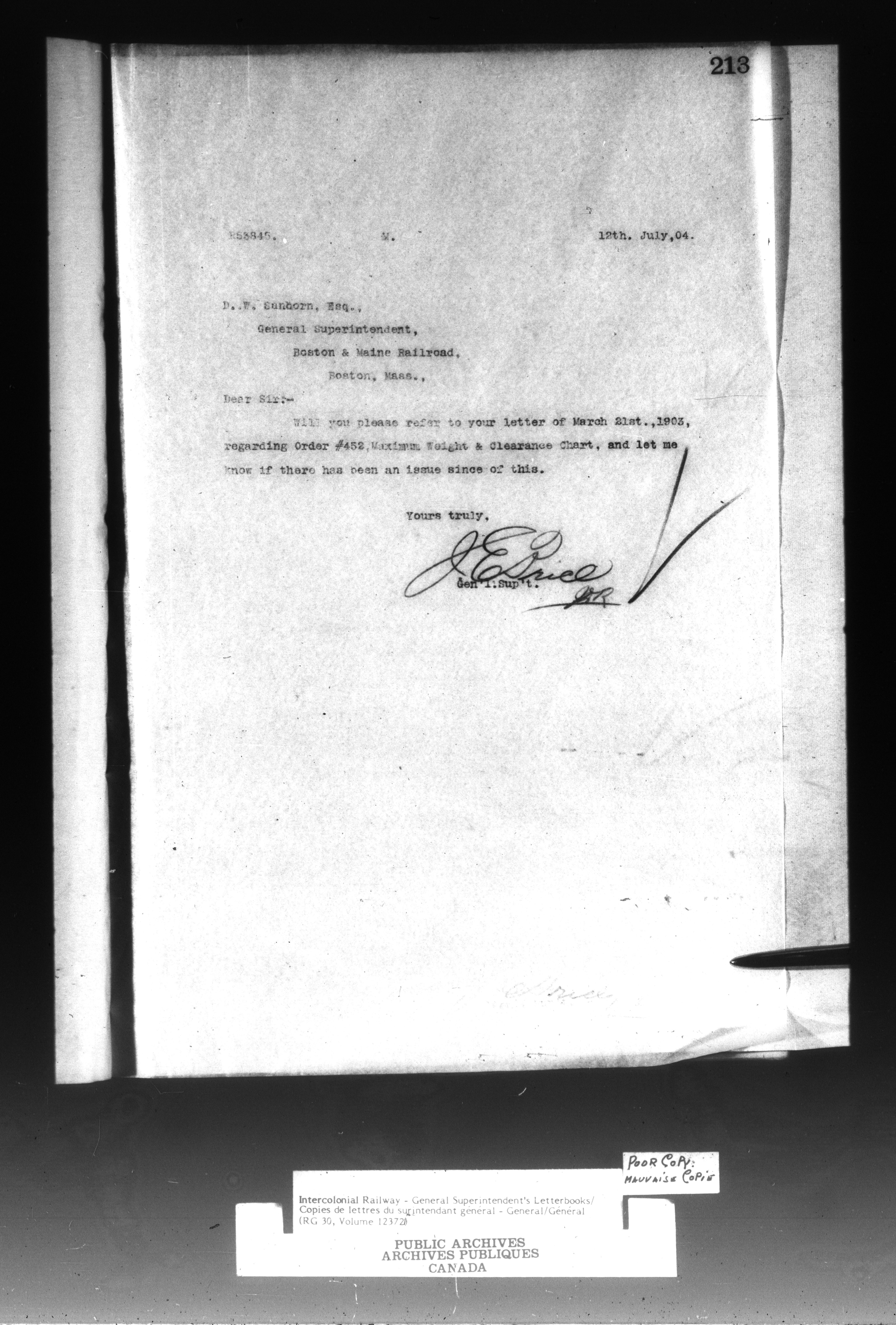 Canadian Government Railways : Office of the General Superintendent correspondence : C-13296
