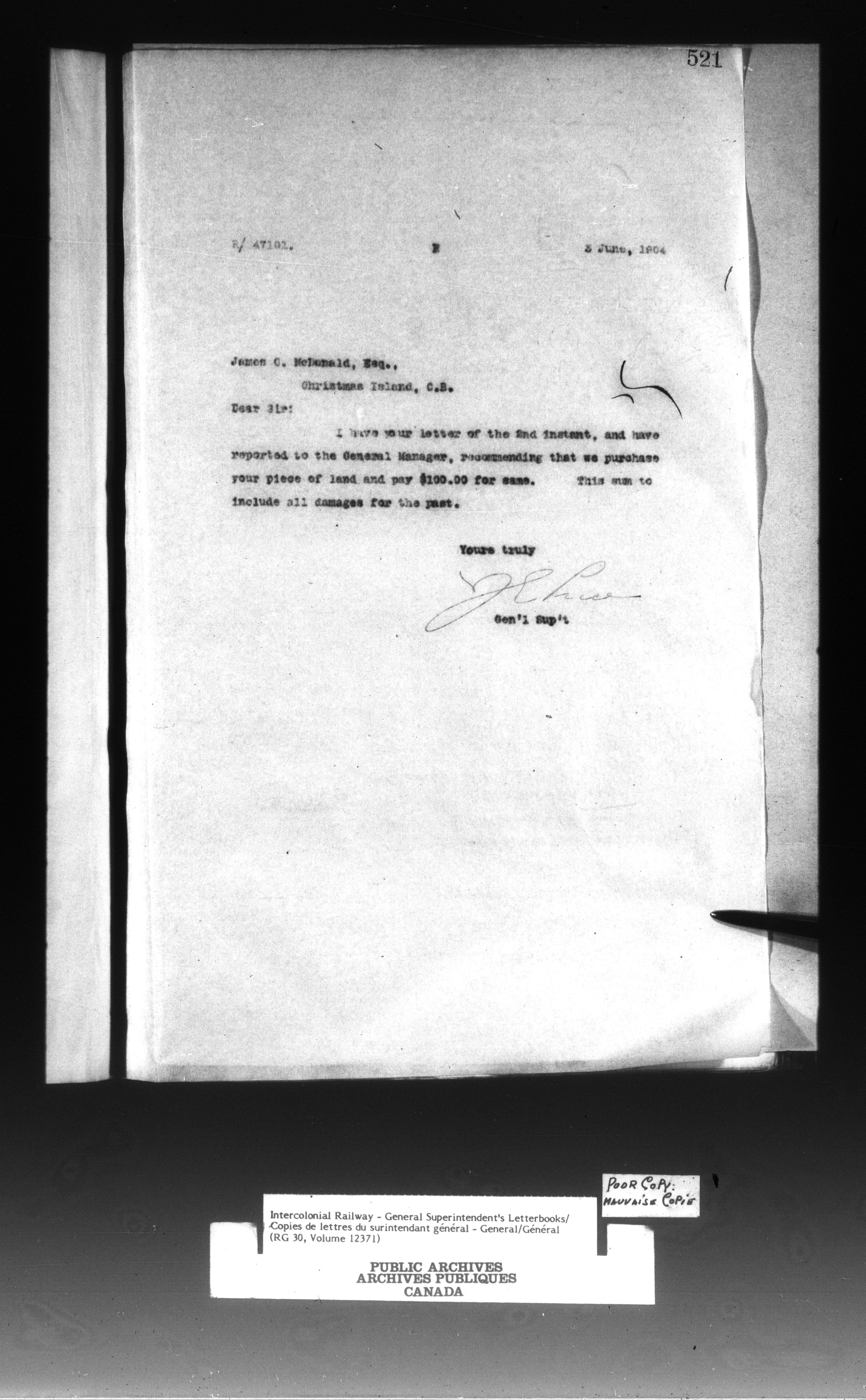 Canadian Government Railways : Office of the General Superintendent - 13296