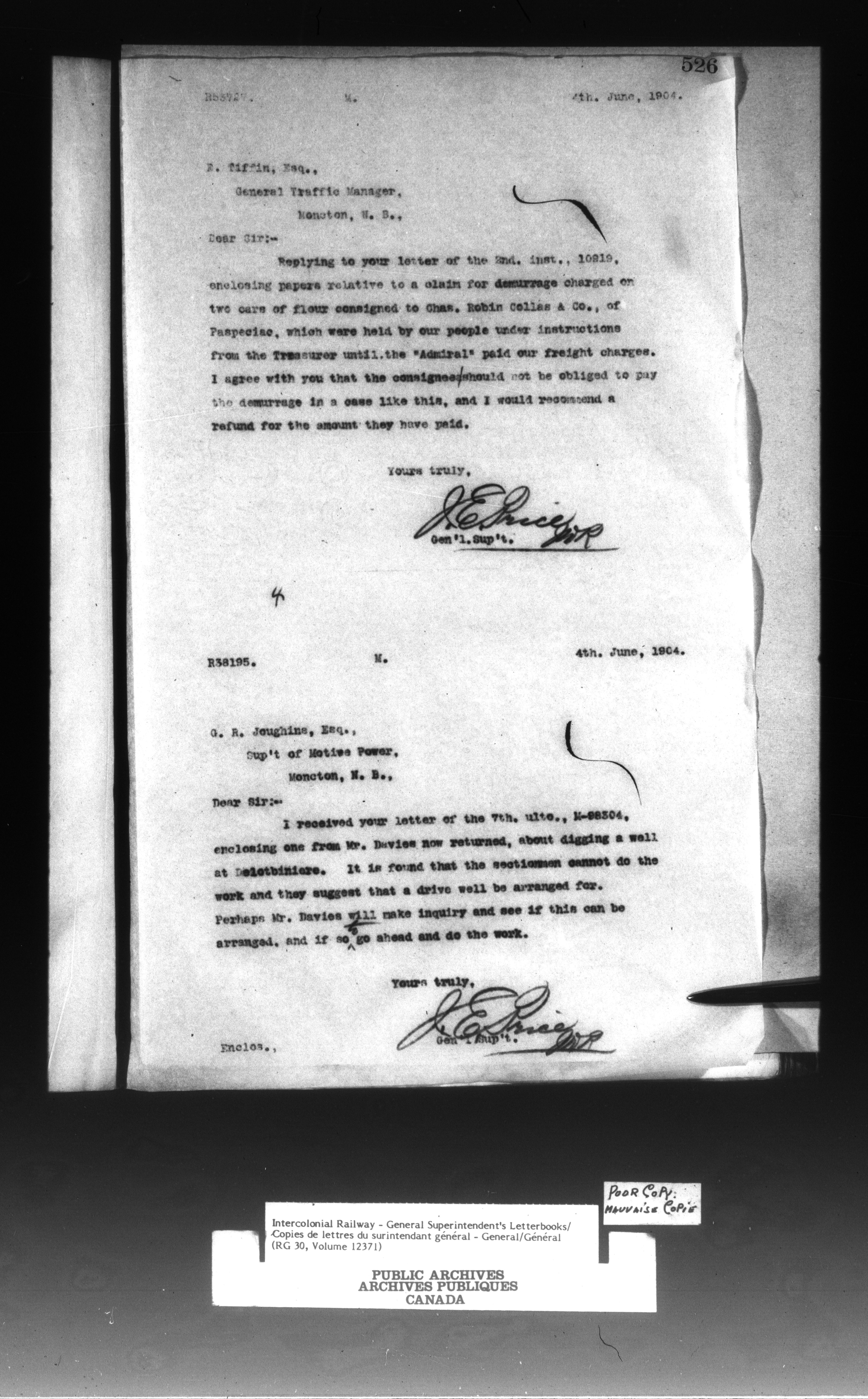 Canadian Government Railways : Office of the General Superintendent - 13296