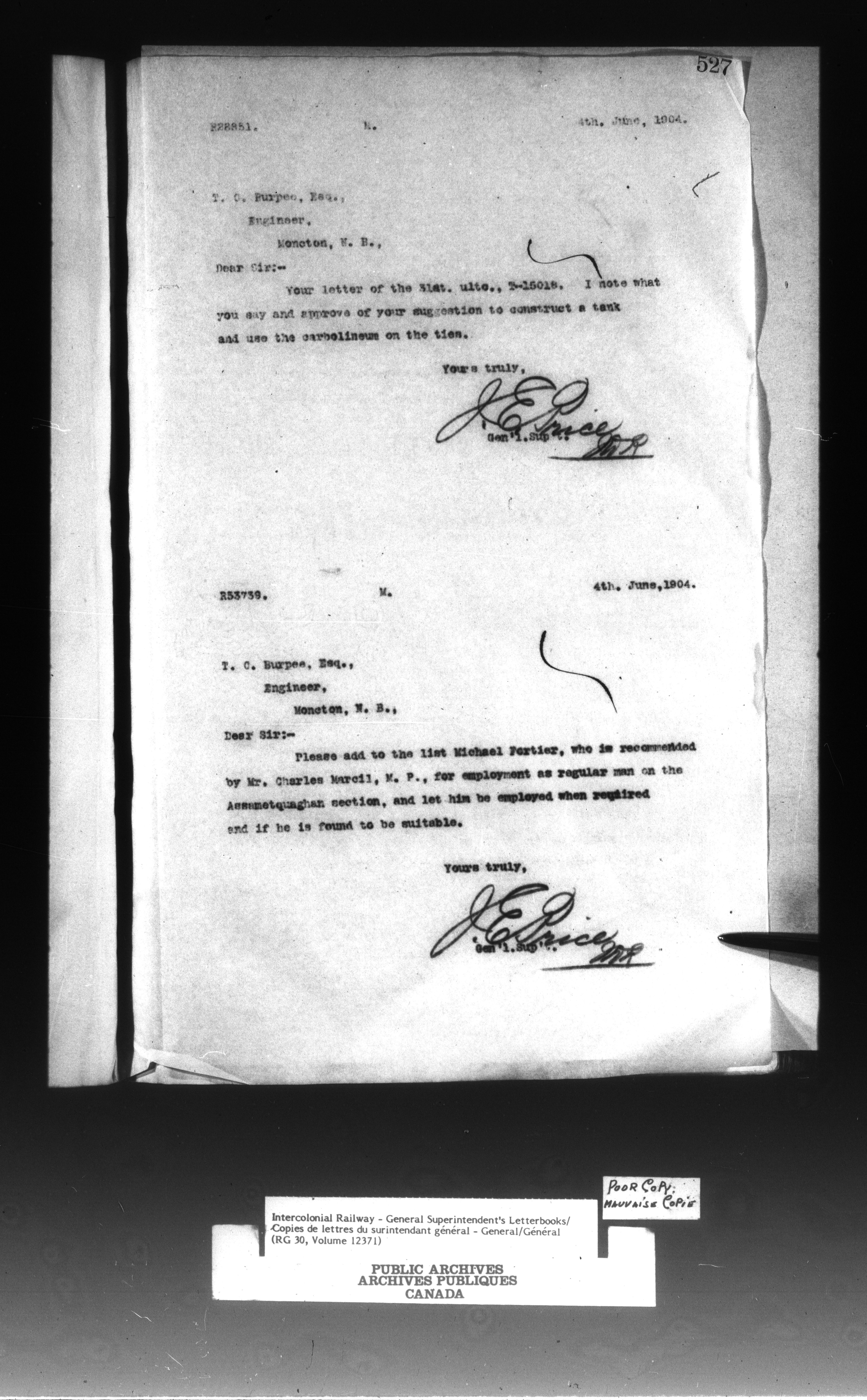 Canadian Government Railways : Office of the General Superintendent correspondence : C-13296