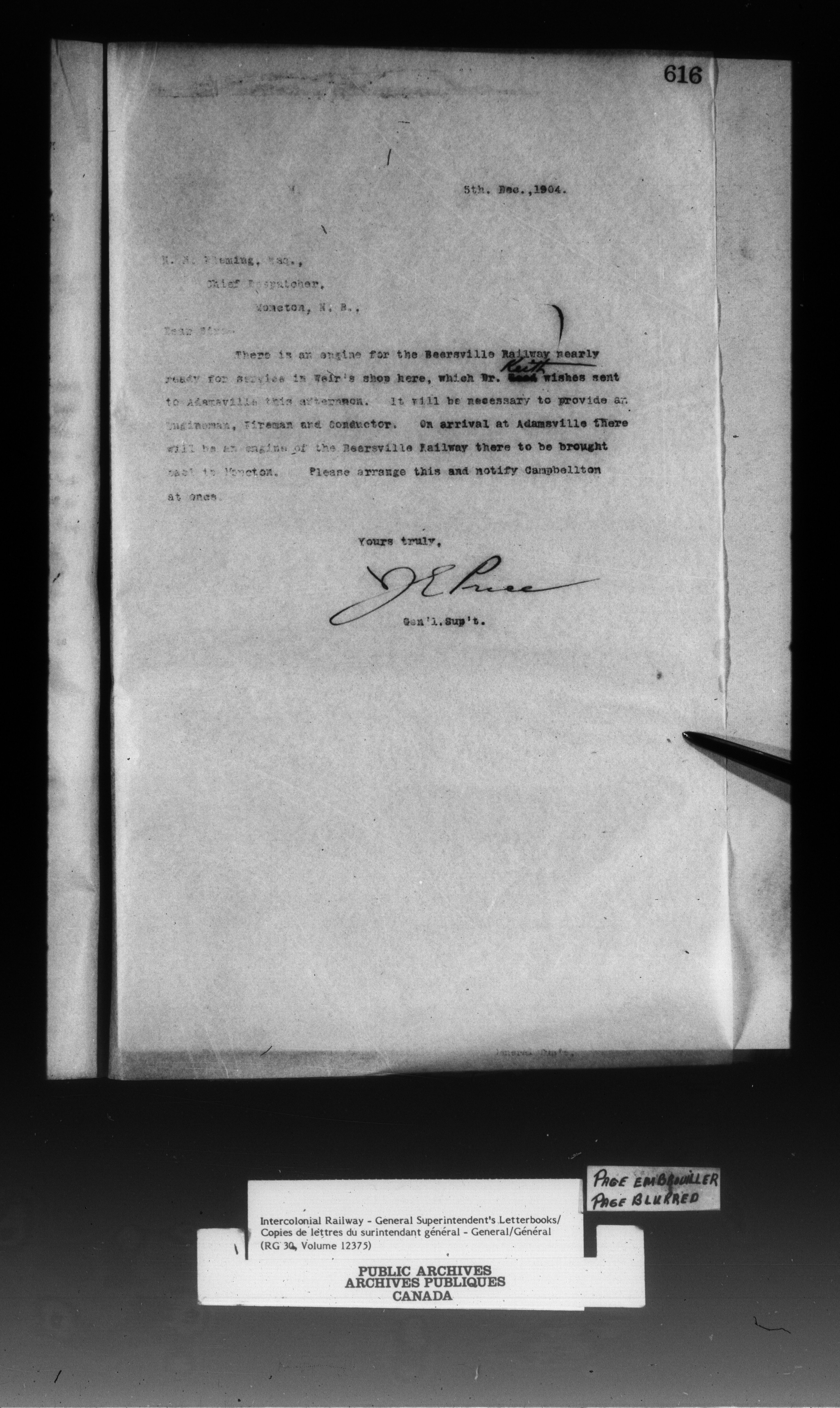 Canadian Government Railways : Office of the General Superintendent - 13301