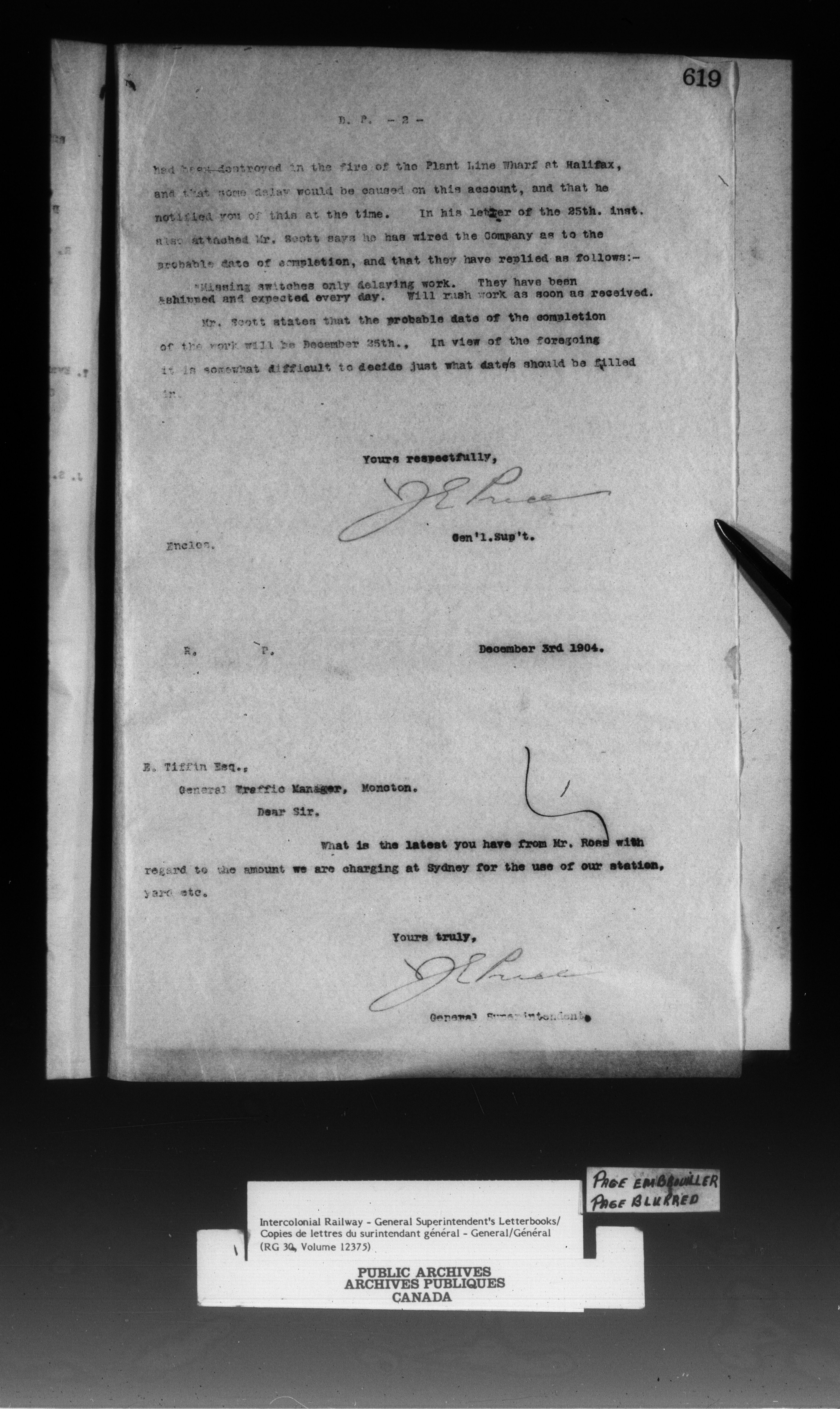 Canadian Government Railways : Office of the General Superintendent - 13301