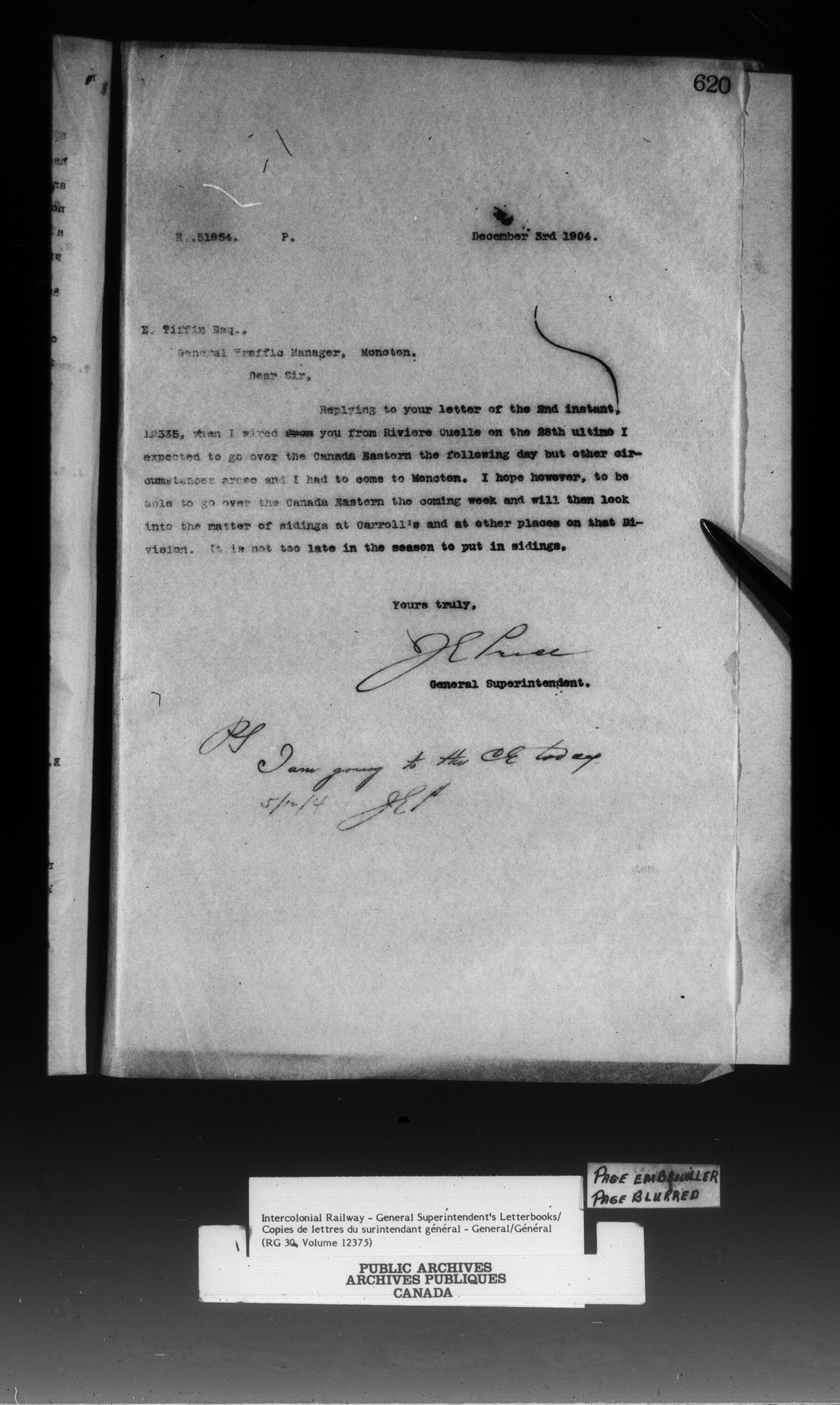 Canadian Government Railways : Office of the General Superintendent - 13301