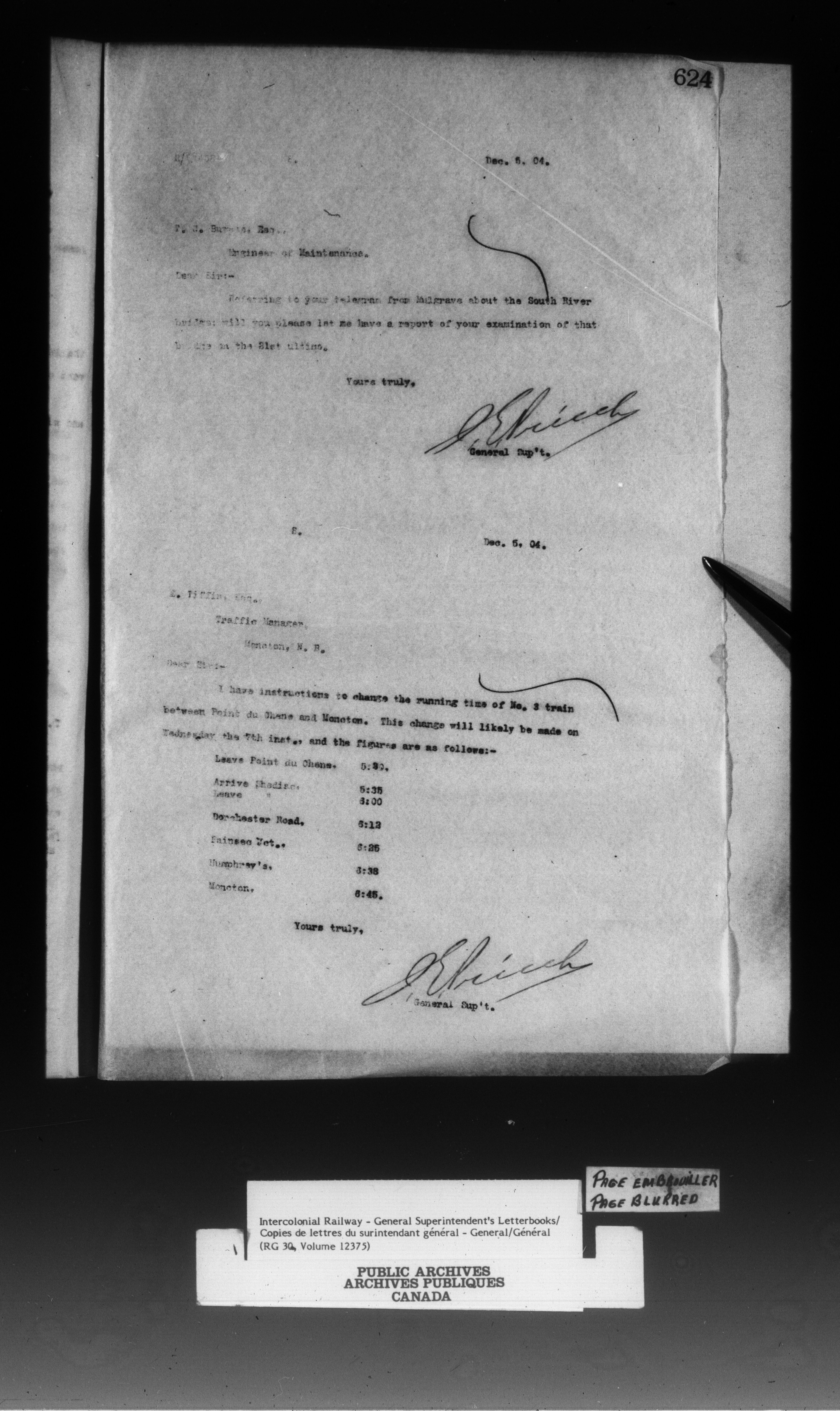 Canadian Government Railways : Office of the General Superintendent - 13301