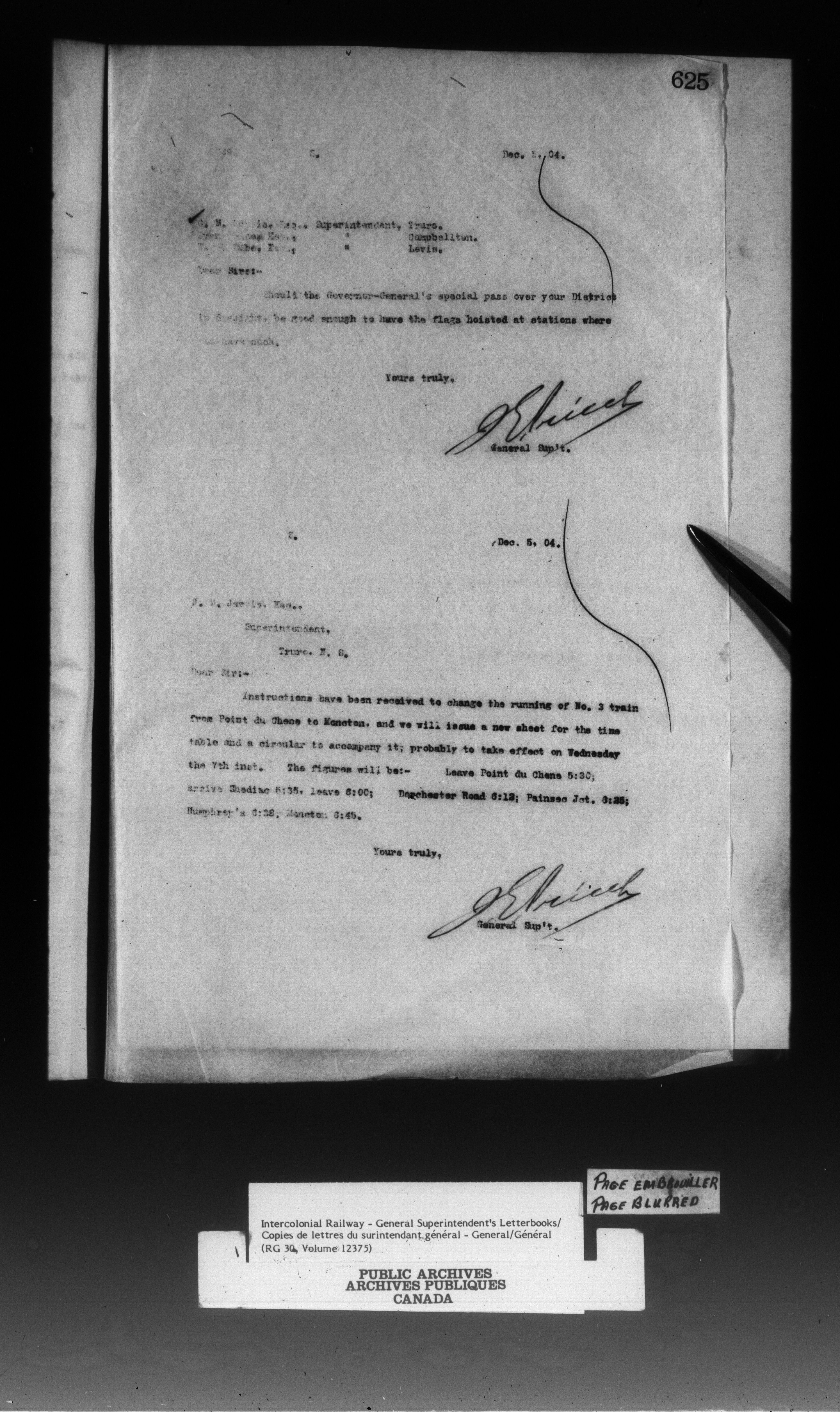Canadian Government Railways : Office of the General Superintendent - 13301