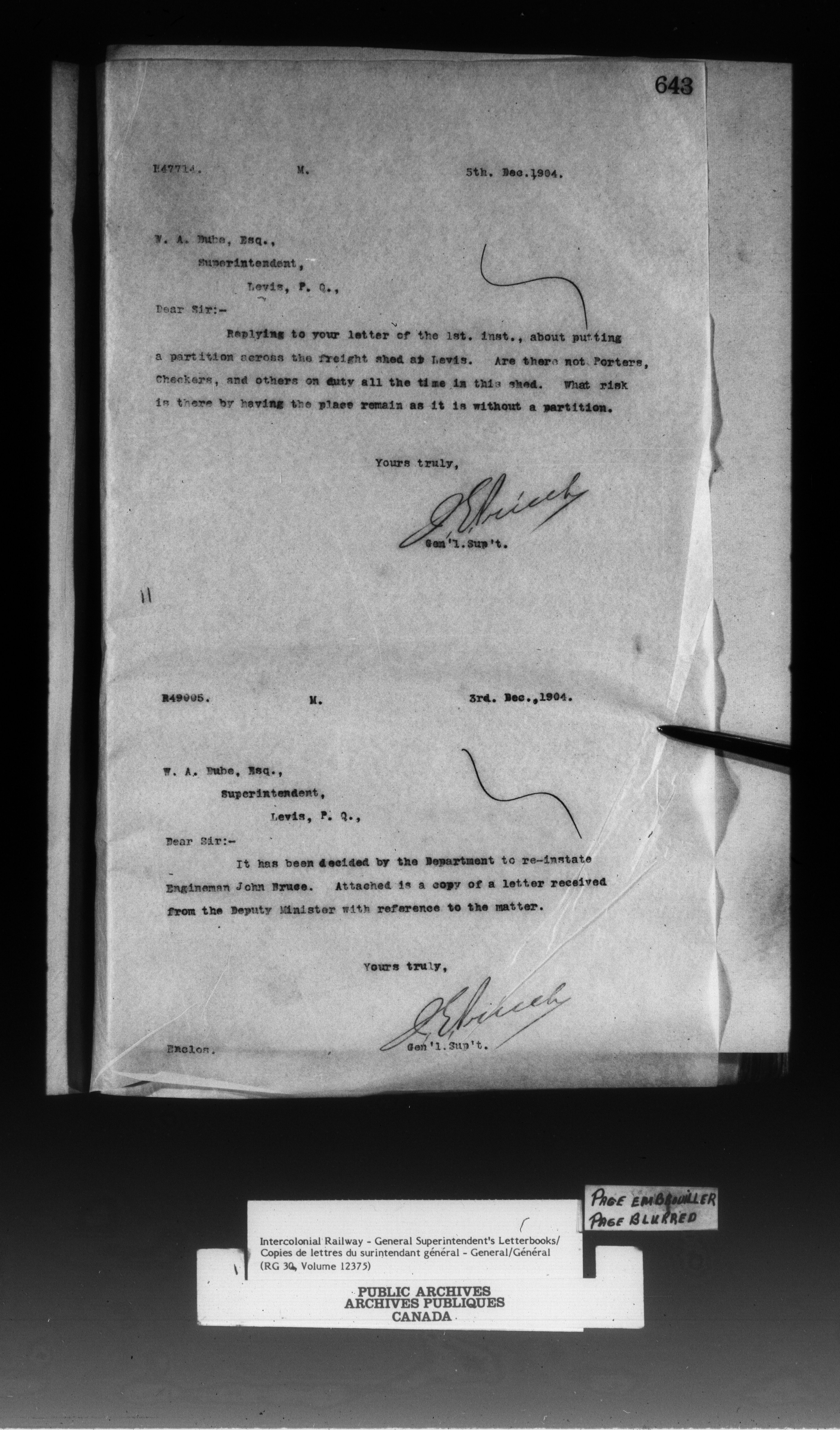 Canadian Government Railways : Office of the General Superintendent - 13301