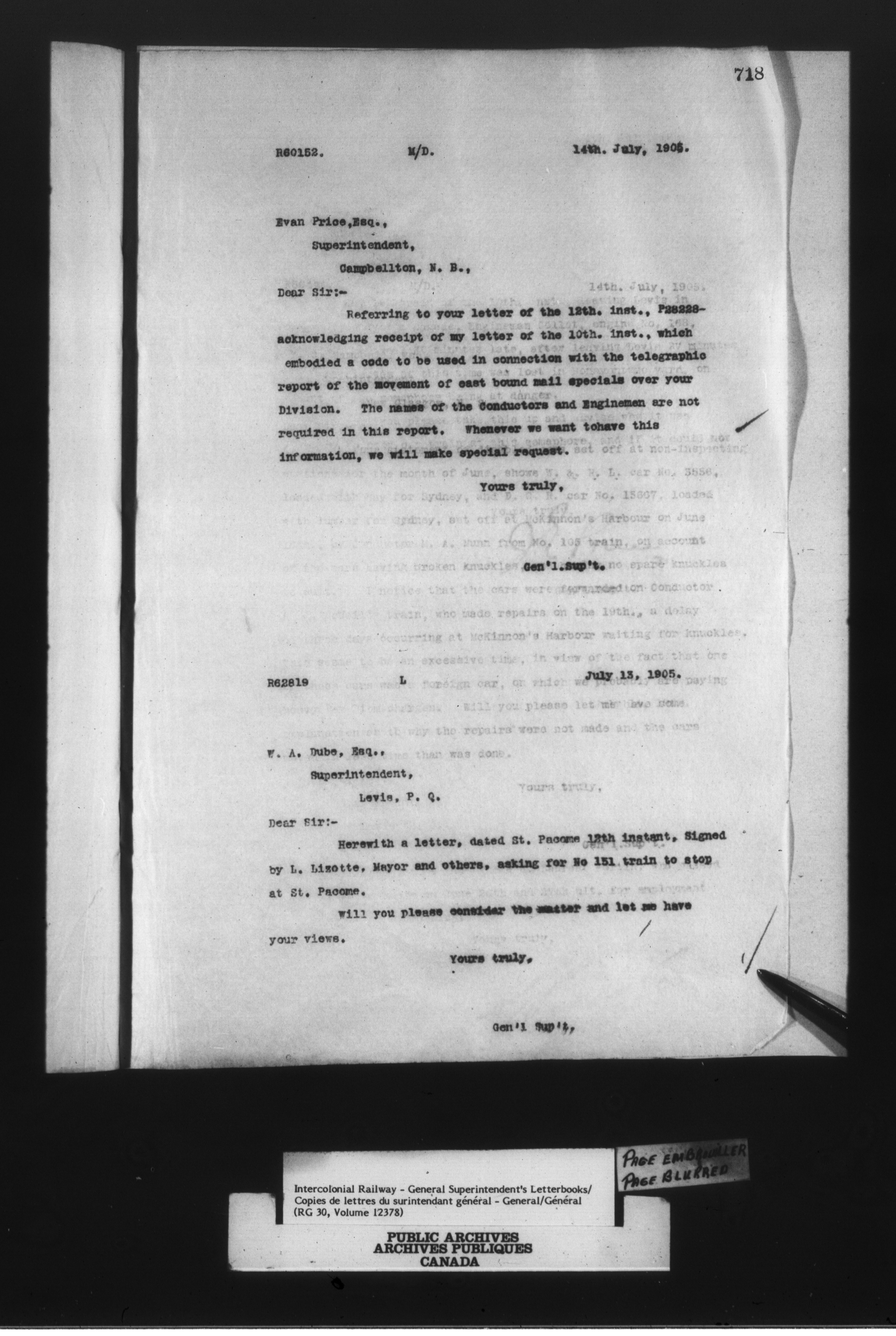 Canadian Government Railways : Office of the General Superintendent correspondence : C-13304