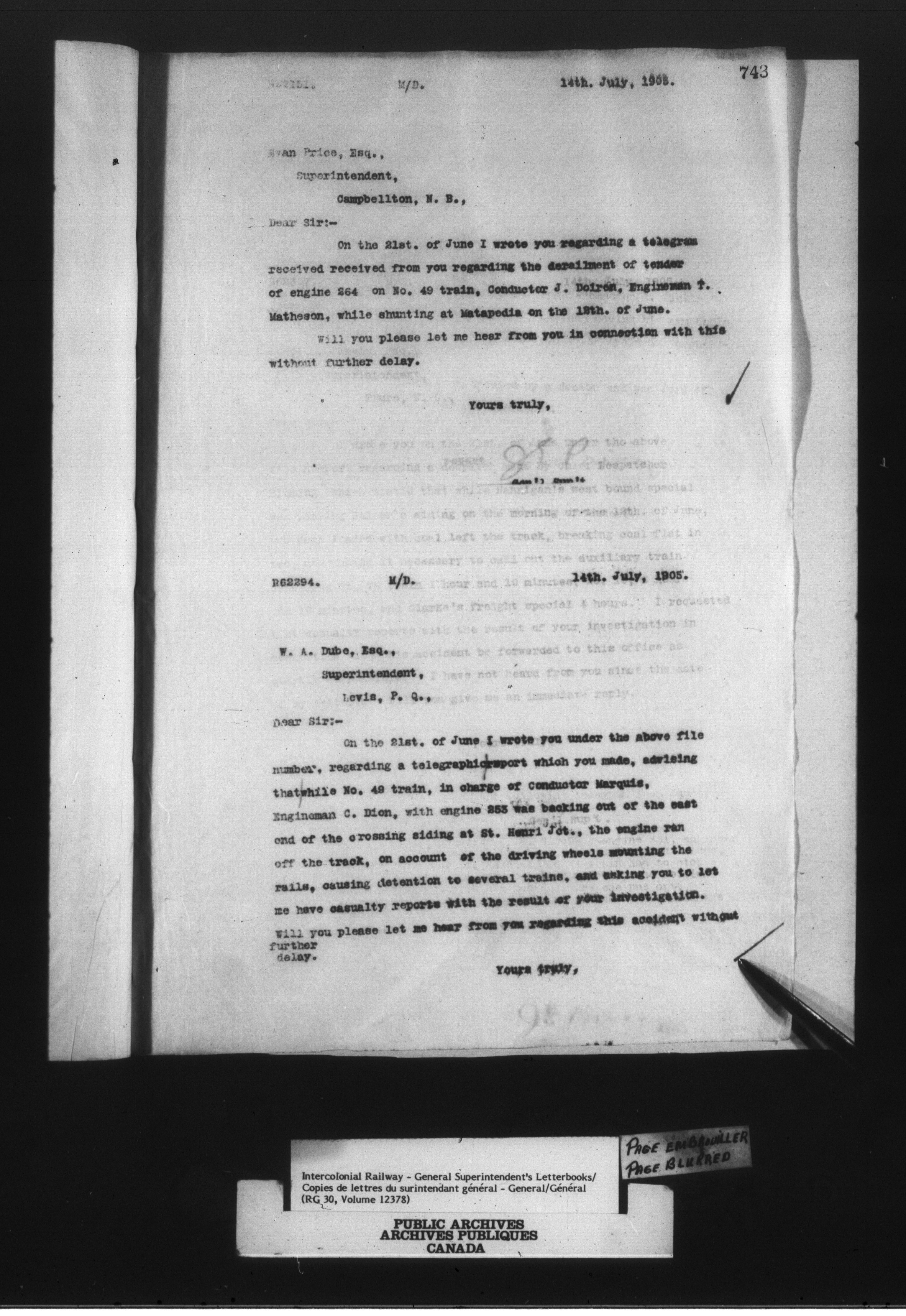Canadian Government Railways : Office of the General Superintendent correspondence : C-13304