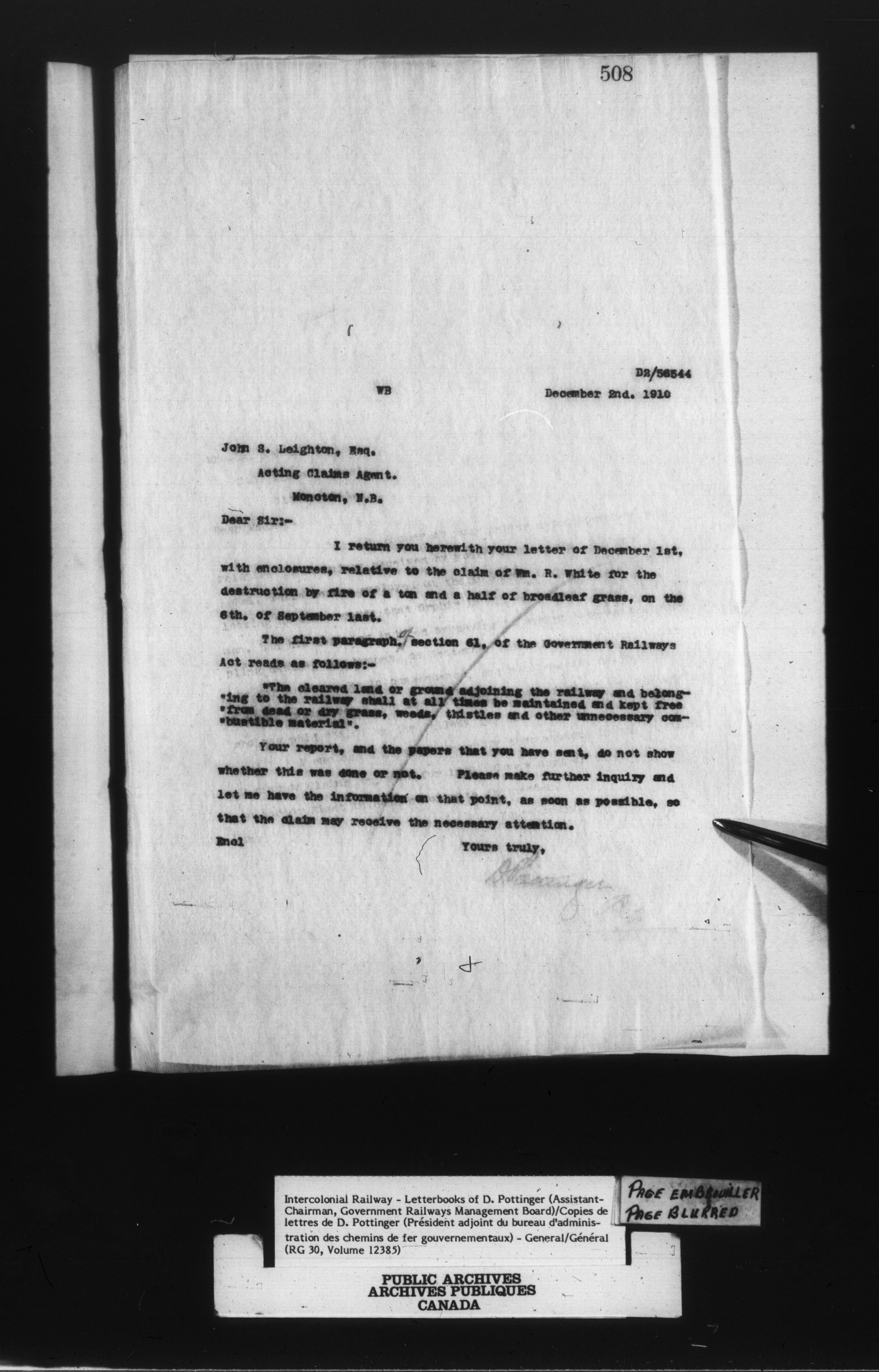 Canadian Government Railways : Government Railways Managing Board - 13309