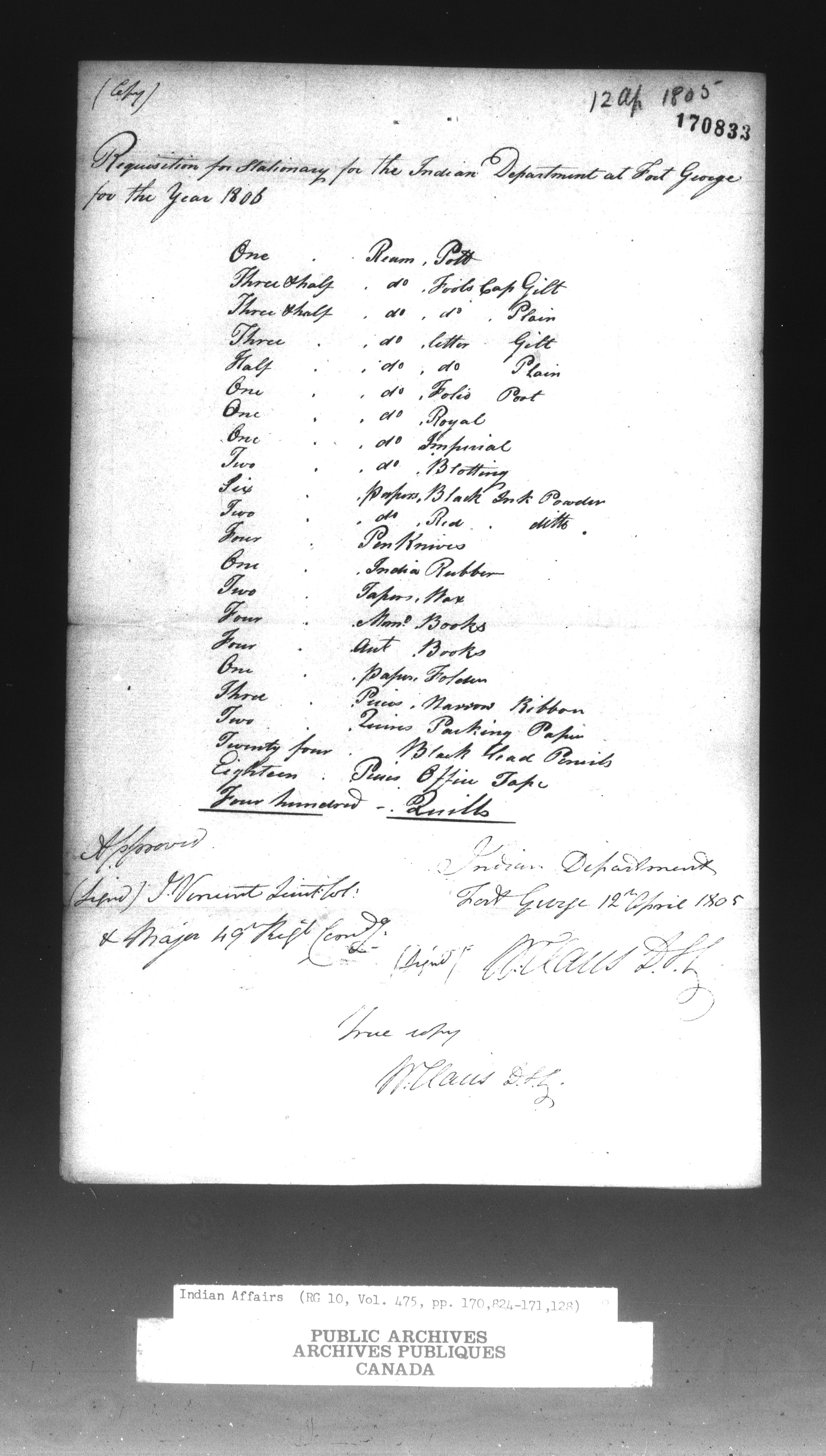 General pre-Confederation Indian Department accounts : Upper Canada and Lower Canada Requisitions, Estimates and Returns - 13335