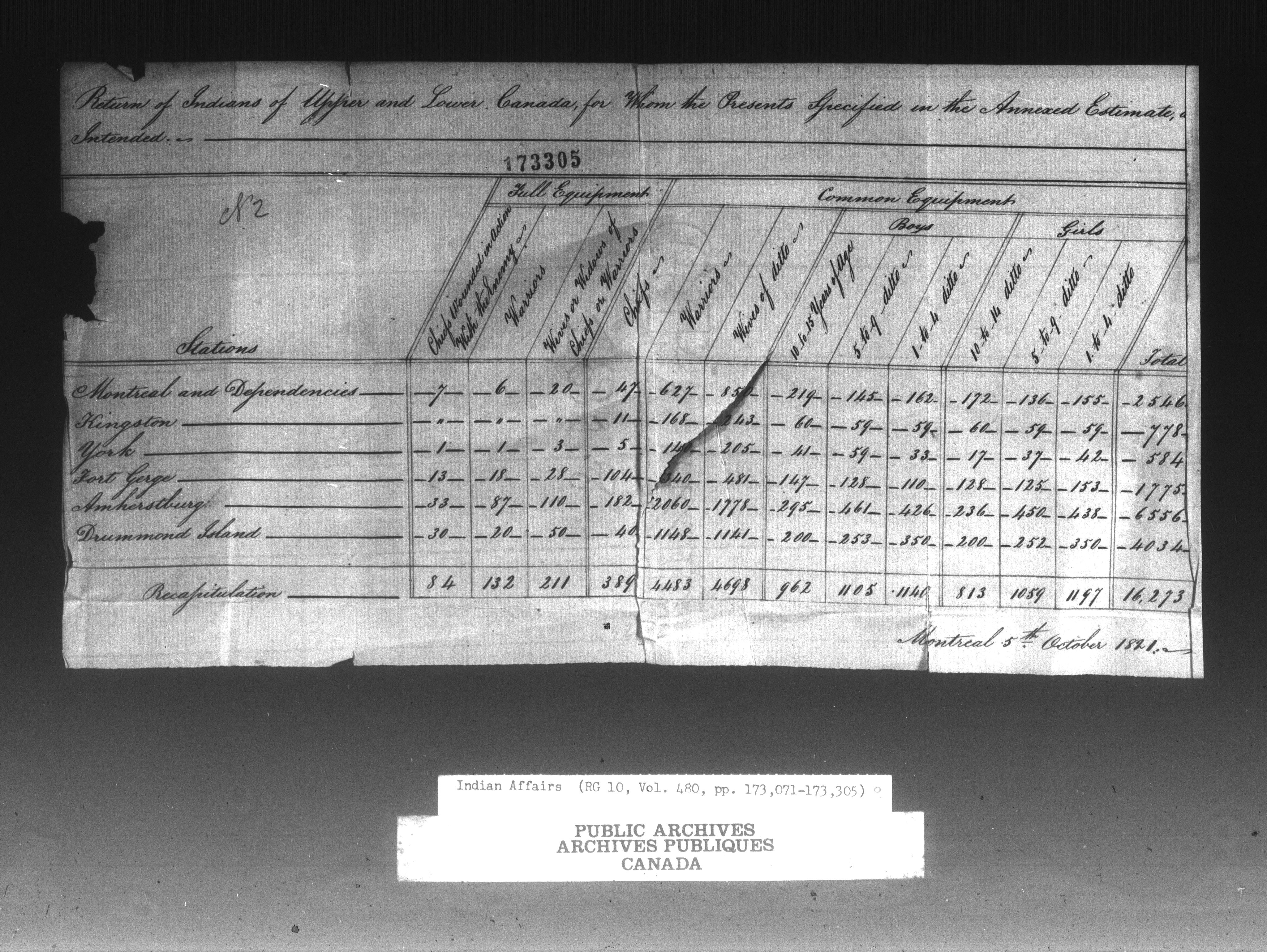 General pre-Confederation Indian Department accounts : Upper Canada and Lower Canada Requisitions, Estimates and Returns - 13337