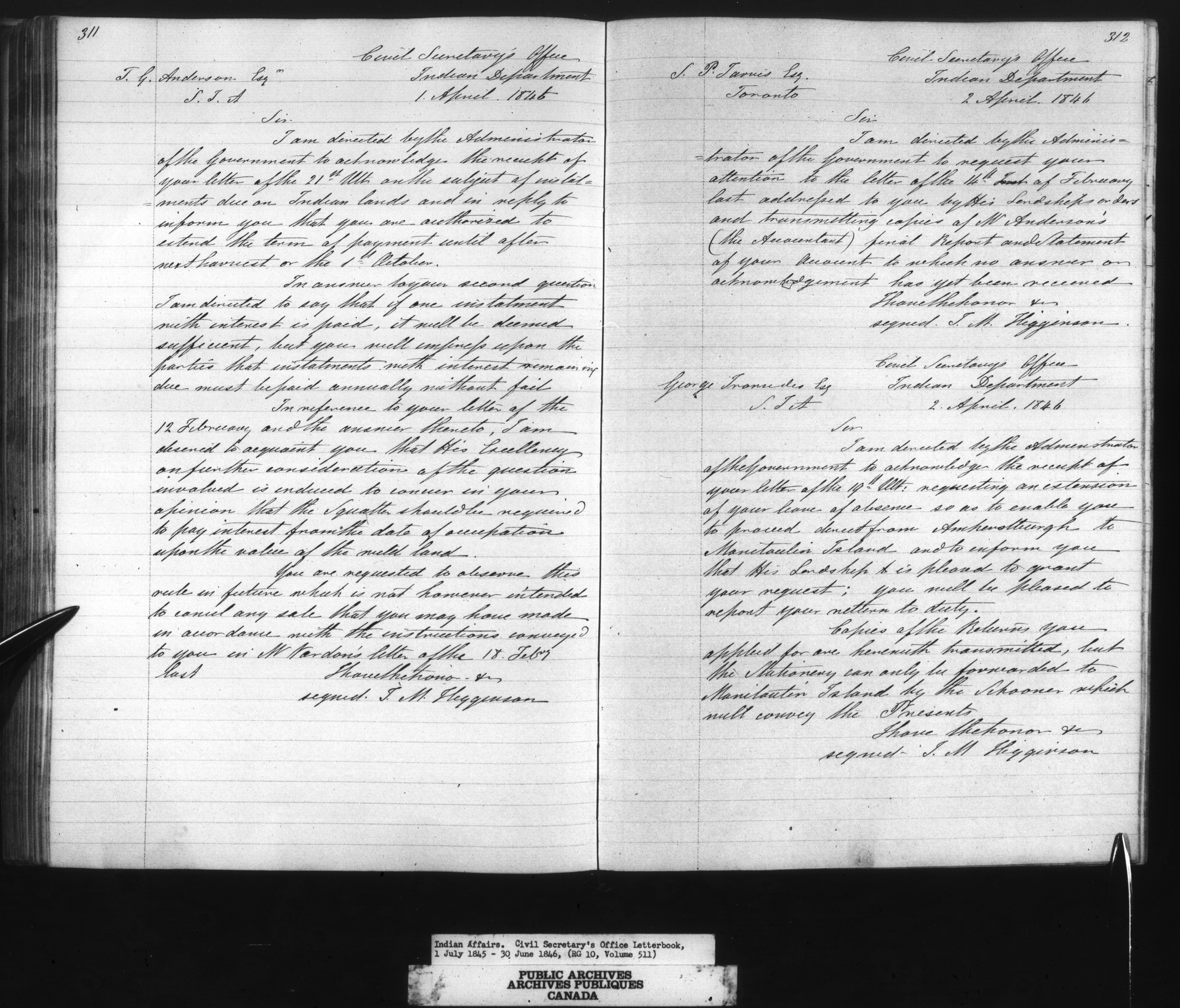 Department of Indian Affairs : Office of the Civil Secretary in the Province of Canada - 13345