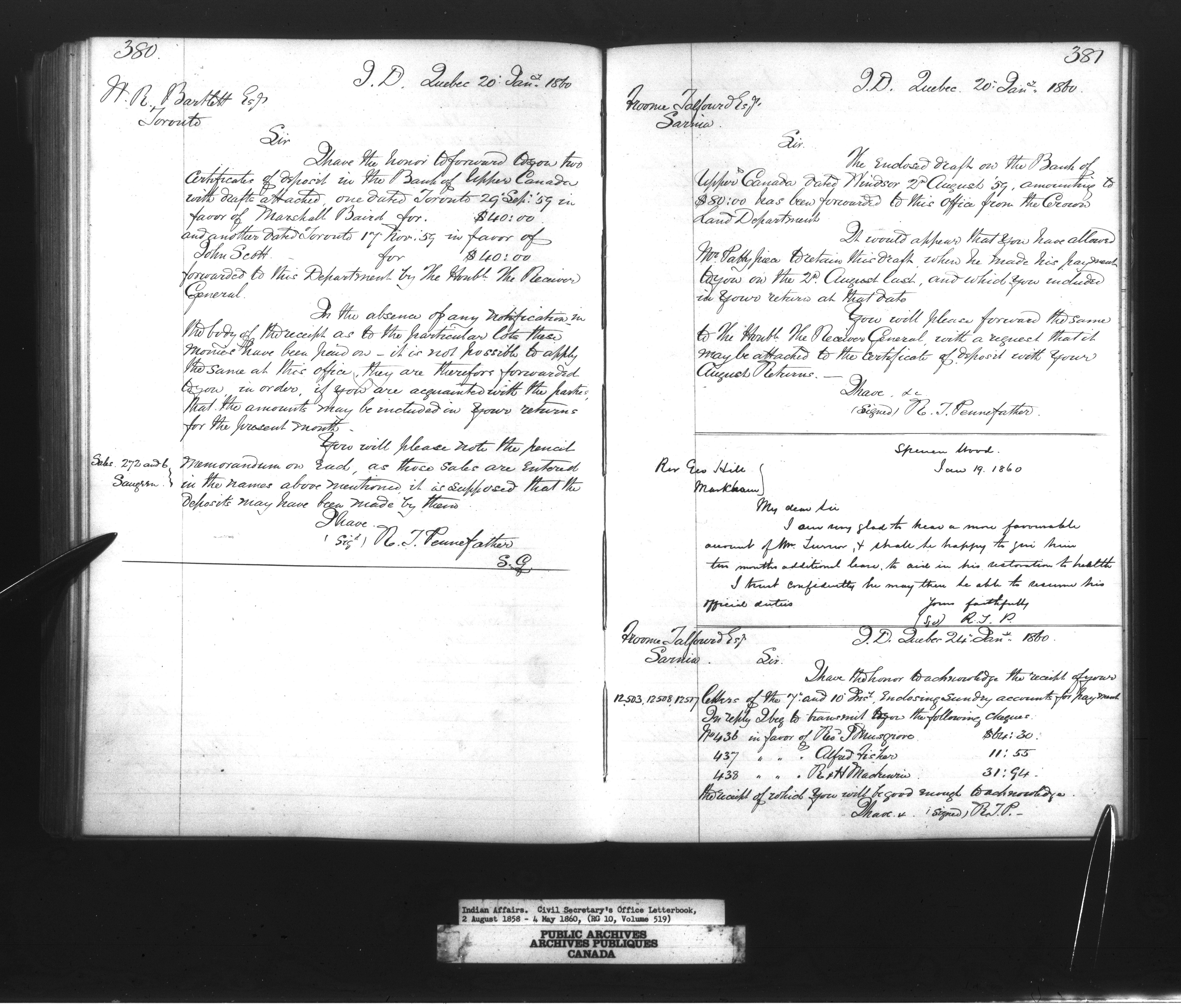 Indian and Inuit Affairs Program : Indexed Letterbooks of William Keppel, Lord Bury, Superintendent General of the Province of Canada - 13347