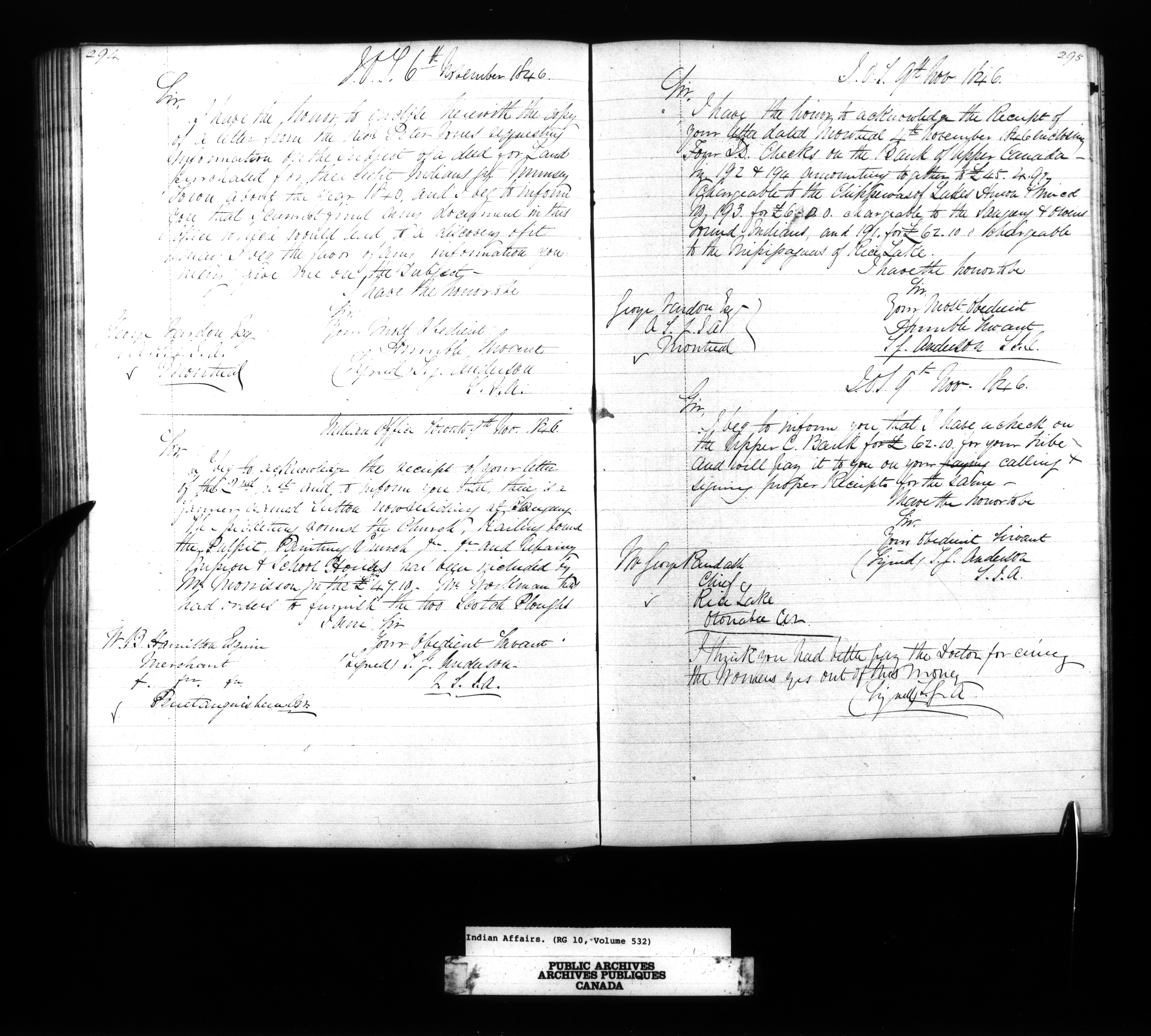 Department of Indian Affairs, Toronto office of the Central Superintendency : Superintendent Thomas G. Anderson's Letterbooks - 13353