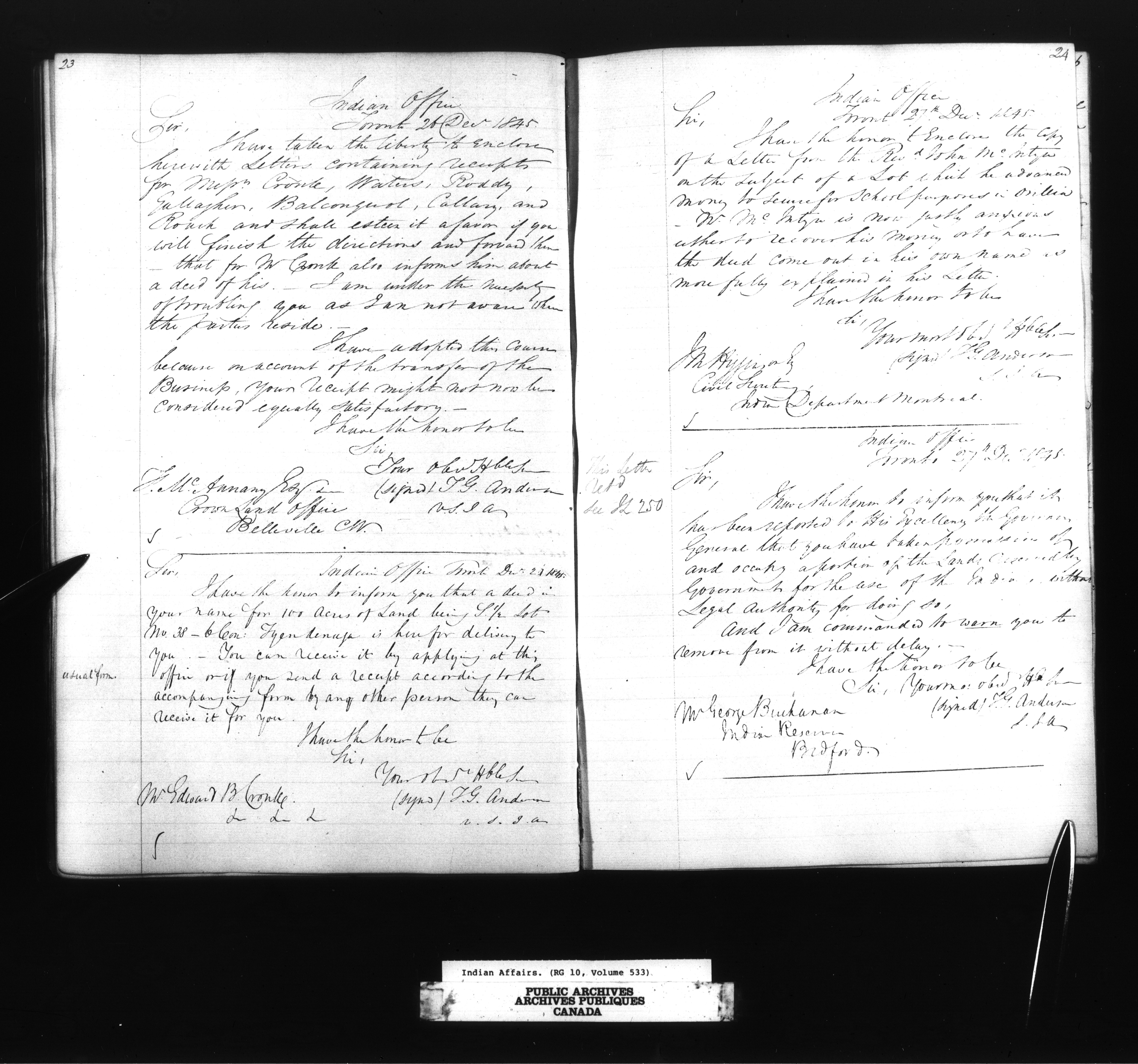 Department of Indian Affairs, Toronto office of the Central Superintendency : Superintendent Thomas G. Anderson's Indexed letterbooks - 13354
