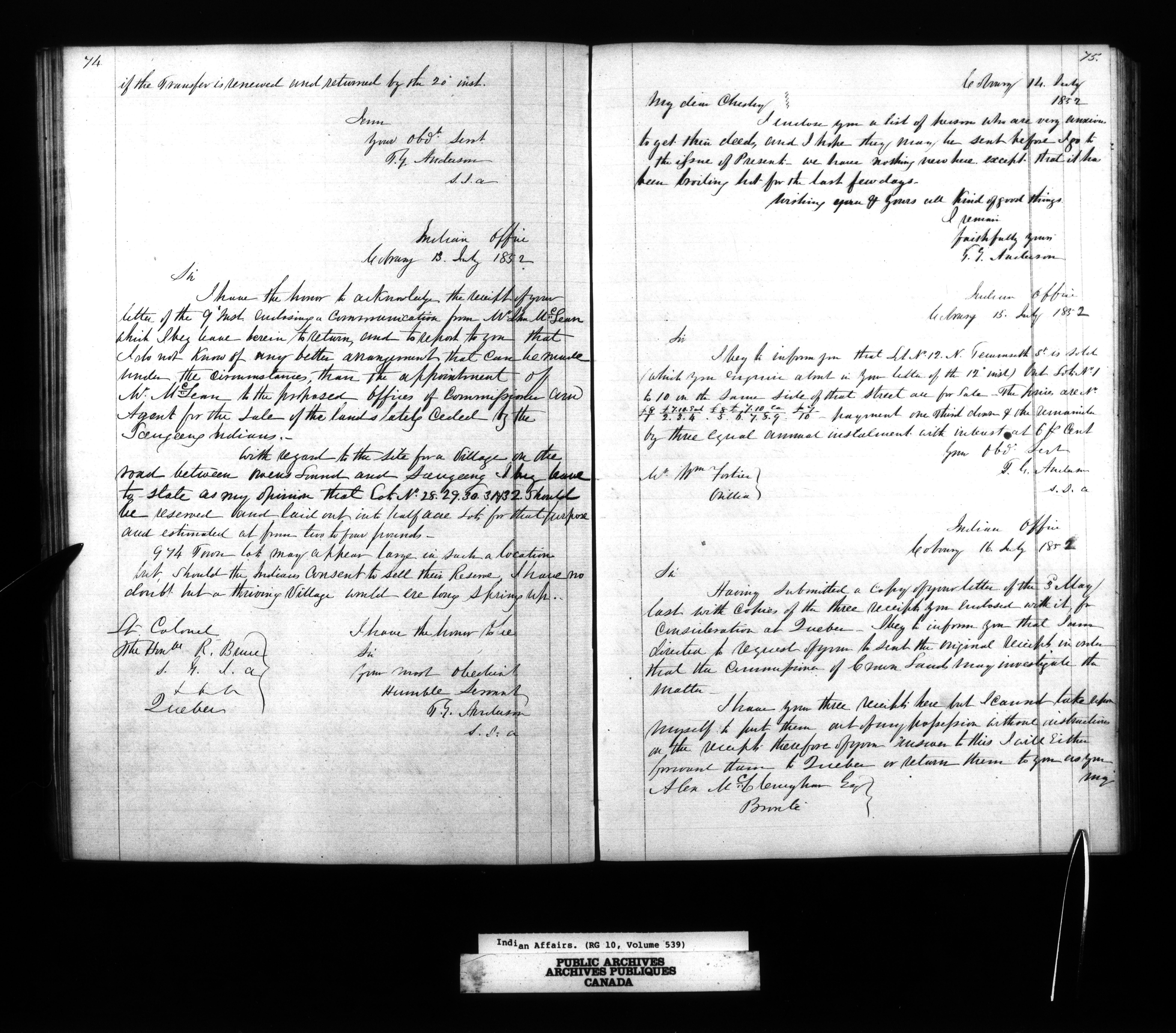 Department of Indian Affairs, Toronto office of the Central Superintendency : Superintendent Thomas G. Anderson's Indexed letterbooks - 13356